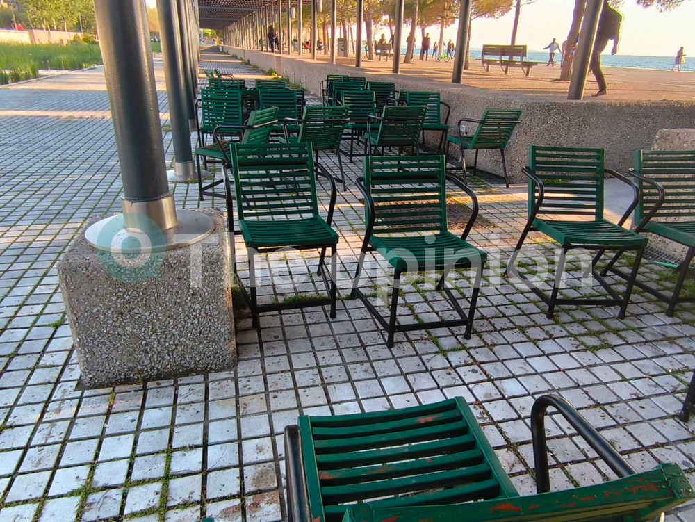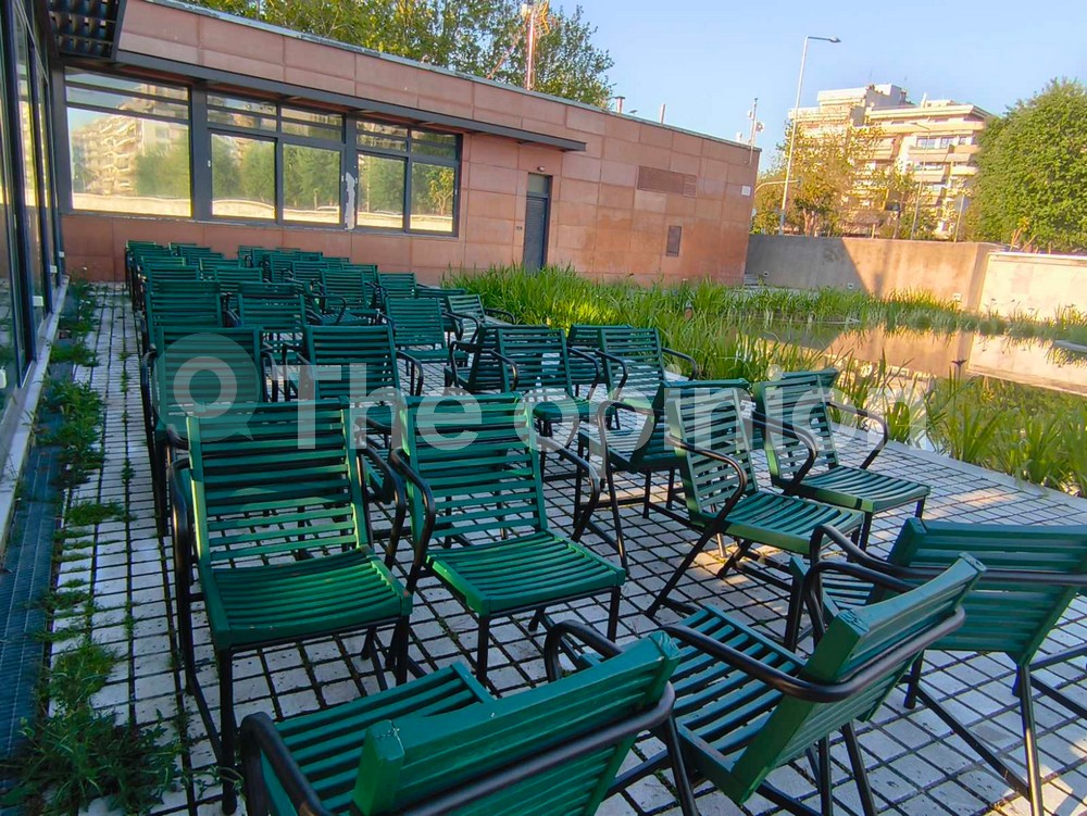 Μπαίνουν στη θέση τους σιγά-σιγά τα τραπεζοκαθίσματα του αναψυκτηρίου στον Κήπο του Νερού στη Νέα Παραλία, έτοιμα να υποδεχθούν Θεσσαλονικείς και επισκέπτες της πόλης.