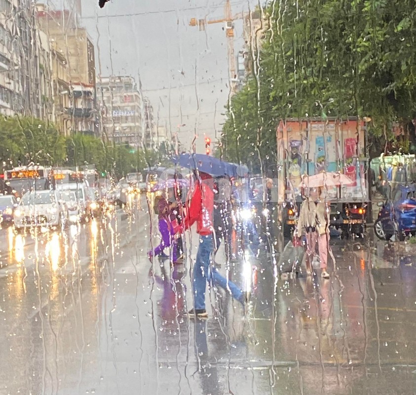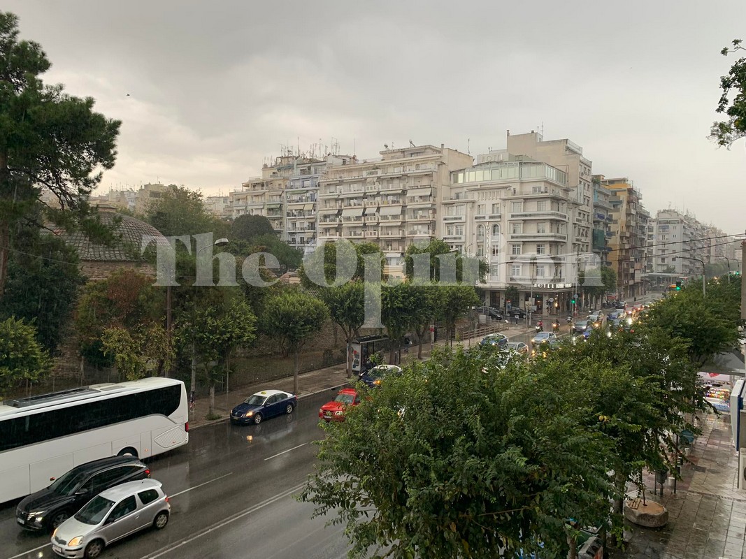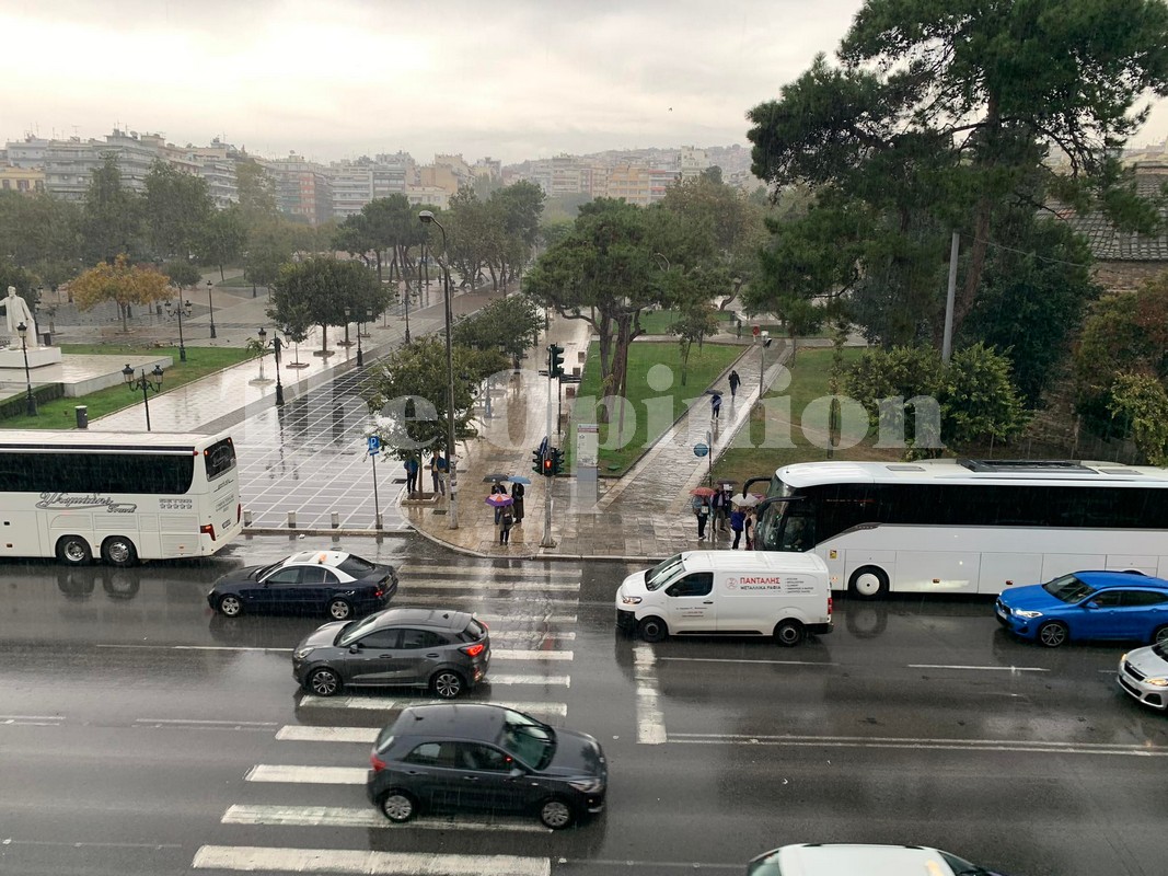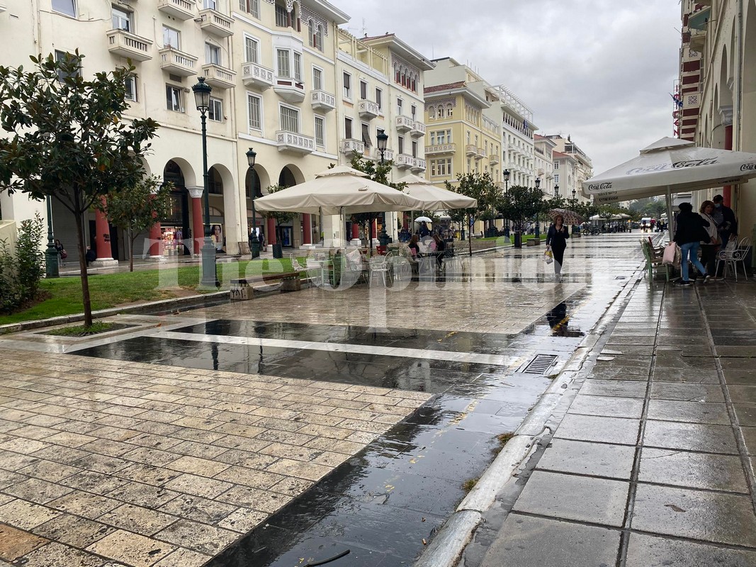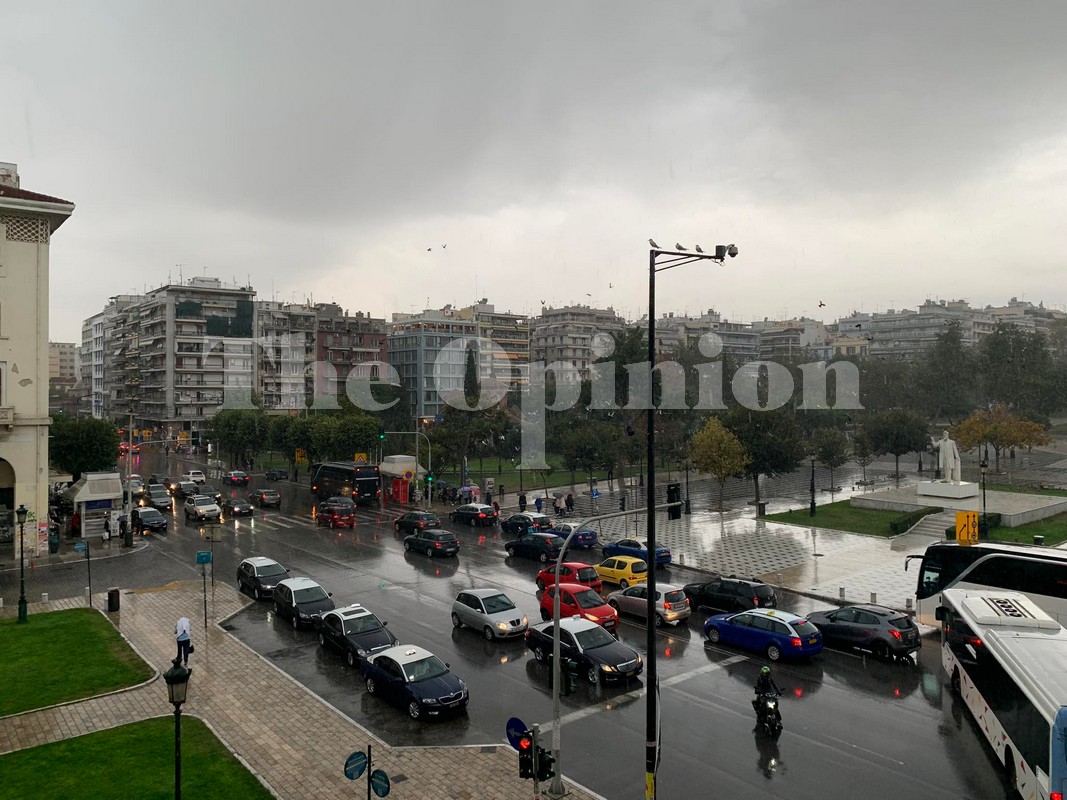 Στο κέντρο της πόλης το ψιλόβροχο υπήρχε από το πρωί, ενώ στις 09:00 περίπου ξεκίνησε να βρέχει... για τα καλά.