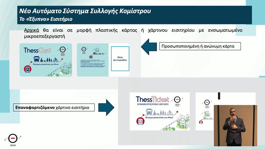 Το λεγόμενο «έξυπνο» εισιτήριο θα είναι σε μορφή πλαστικής κάρτας ή σε χάρτινο απόκομμα με ενσωματωμένο μικροεπεξεργαστή αρχικά, που θα παραλαμβάνονται από εκδοτήρια του ΟΣΕΘ, καθώς και σε τελείως ψηφιακή μορφή στο wallet του κινητού μας.