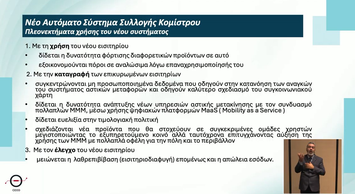 Μέσω του νέου αυτόματου συστήματος συλλογής κομίστρων πέραν της εισιτηριοδιαφυγής, στόχος είναι και η συλλογή στοιχείων, όπως για παράδειγμα ο μετρητής επιβατών, προκειμένου να βελτιωθεί η συνθήκη των ΜΜΜ προς όφελος του επιβατικού κοινού.