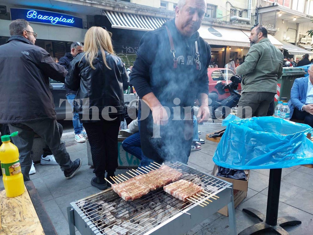 Εστιατόρια, καφέ, μέχρι και καταστήματα που δεν σχετίζονται με την εστίαση έβγαλαν έξω τις ψησταριές, προκειμένου να ψήσουν τα δικά τους κρέατα και να κεράσουν τον κόσμο της Θεσσαλονίκης.