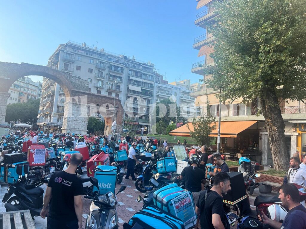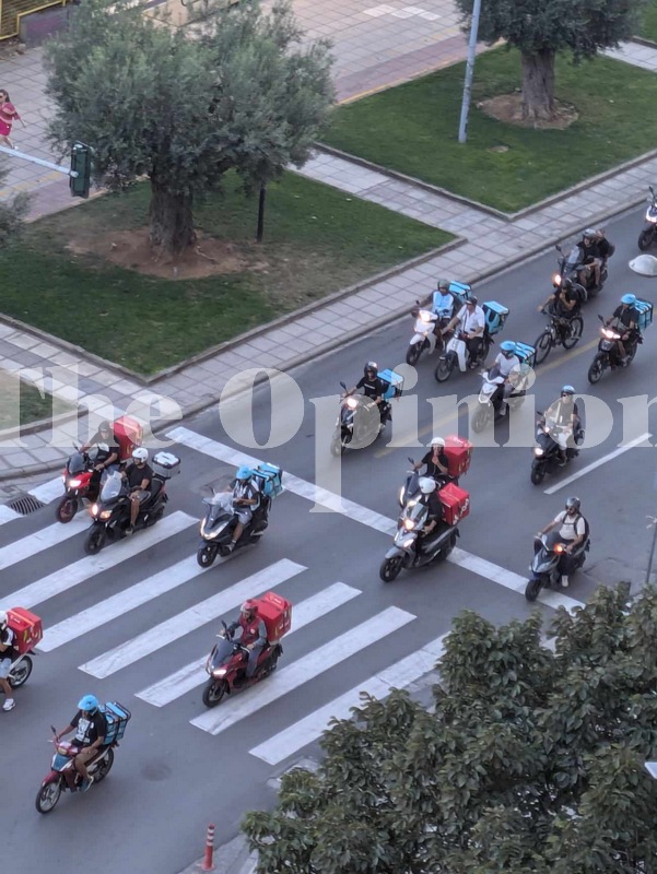 Από την Καμάρα όπου συγκεντρώθηκαν, ξεκινούν μοτοπορεία οι διανομείς που δουλεύουν ως ελεύθεροι επαγγελματίες, ενώ παράλληλα θα γίνει μοτοπορεία των συμβασιούχων διανομέων στην πλατεία της ΧΑΝΘ.