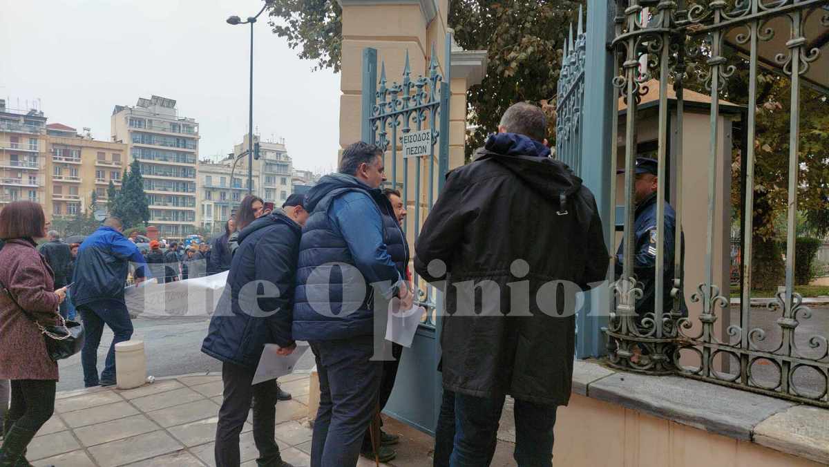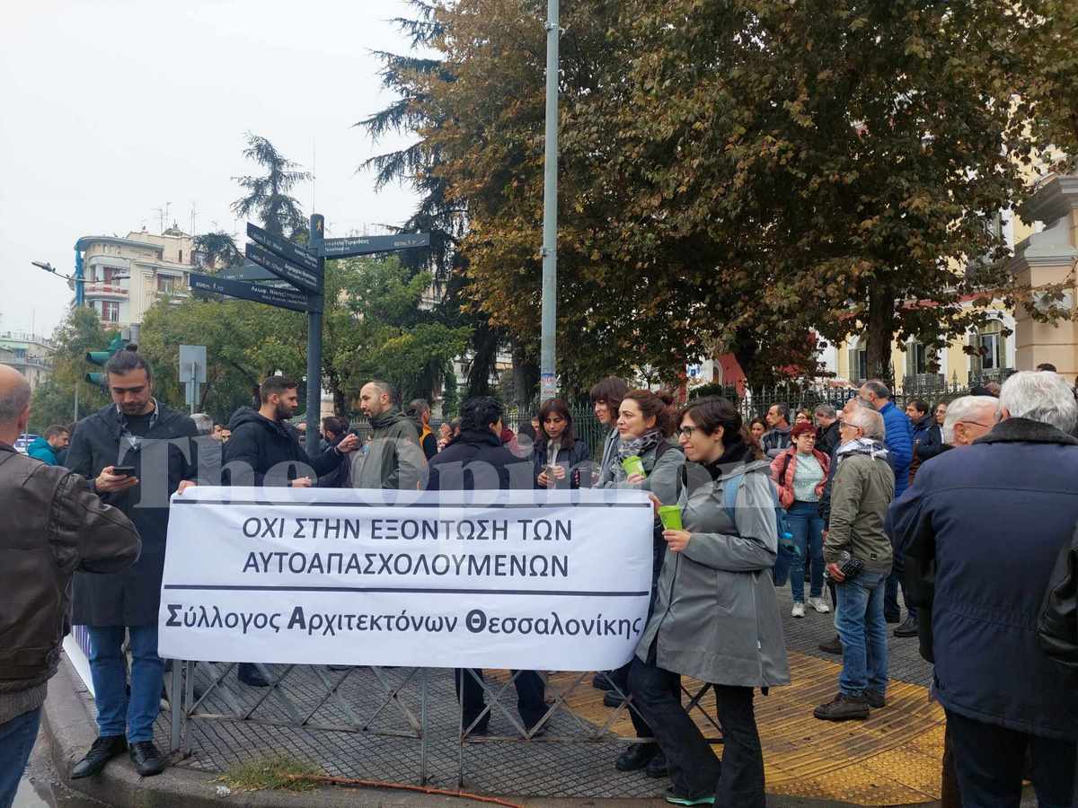 Παράσταση διαμαρτυρίας πραγματοποίησαν έξω από το Υπουργείο Μακεδονίας και Θράκης μέλη από εργατικά σωματεία, σύλλογοι εργαζομένων και επαγγελματικοί φορείς της Θεσσαλονίκης, με αφορμή το νέο φορολογικό νομοσχέδιο.