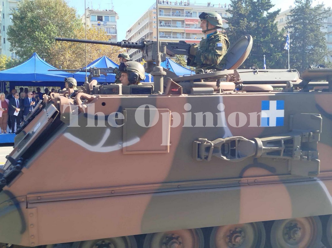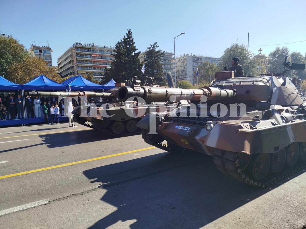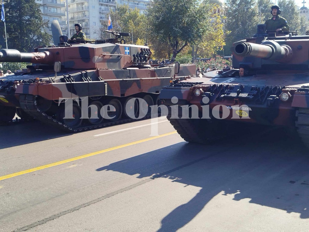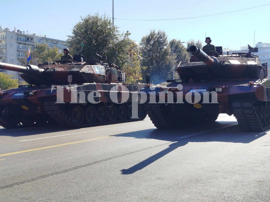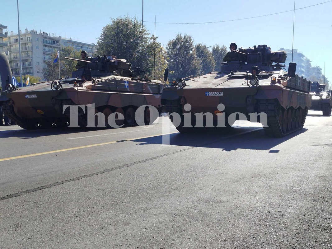 Σε άψογο σχηματισμό παρέλασαν τα σύγχρονα άρματα μάχης τύπου Leopard 1 & 2, αυτοκινούμενα πυροβόλα τύπου Panjer, πυραυλικά συστήματα, τμήματα μηχανικού εκκαθάρισης ναρκοπεδίων, αυτοκινούμενοι όλμοι και πολλά άλλα.