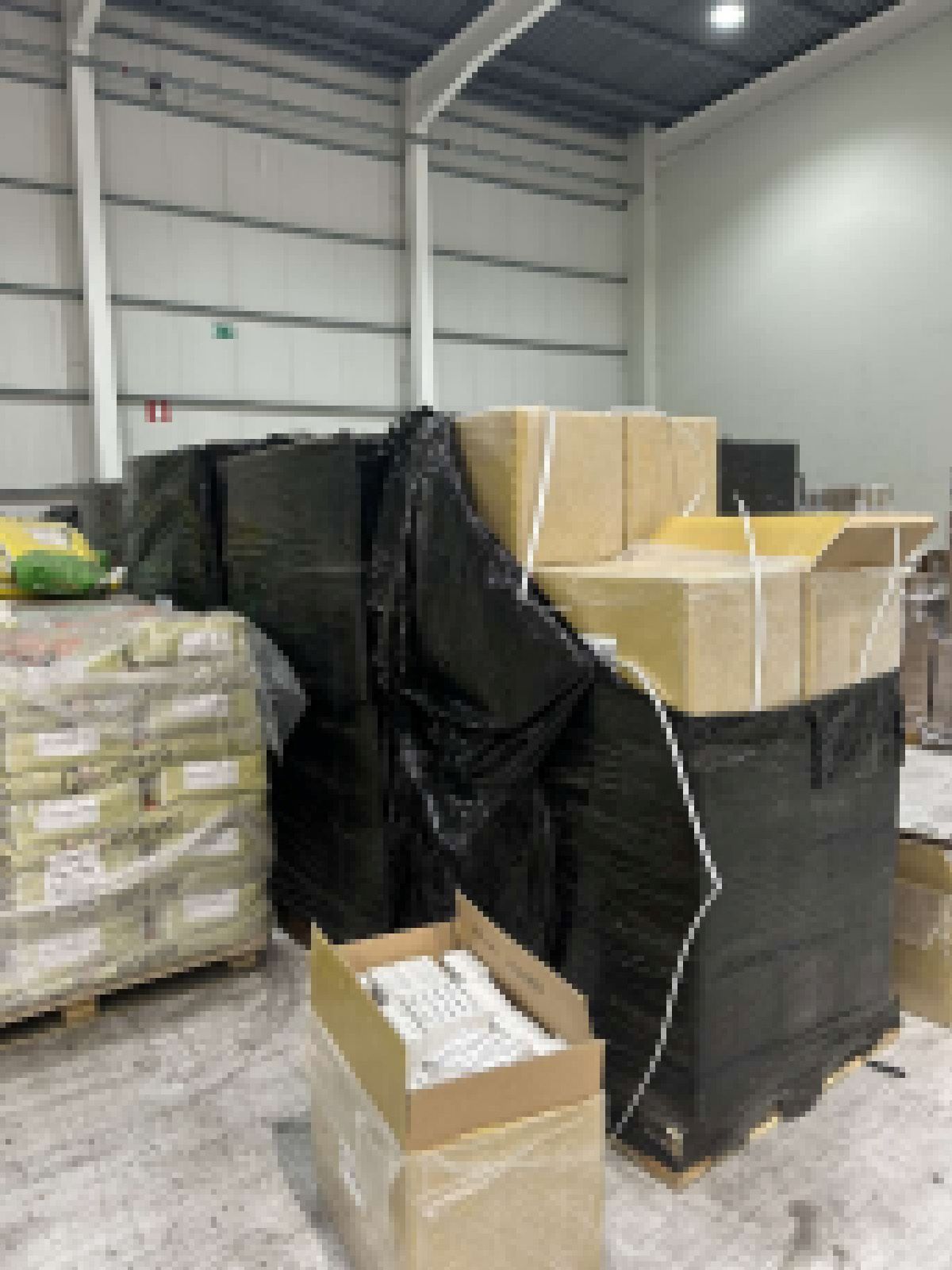 Τα κατασχεθέντα εντοπίστηκαν σε 17 παλέτες, τοποθετημένες σε δύο αποθήκες – μία στη Σίνδο και μία στην Αττική – εκ των οποίων οι 7 είχαν προορισμό χώρα του εξωτερικού.