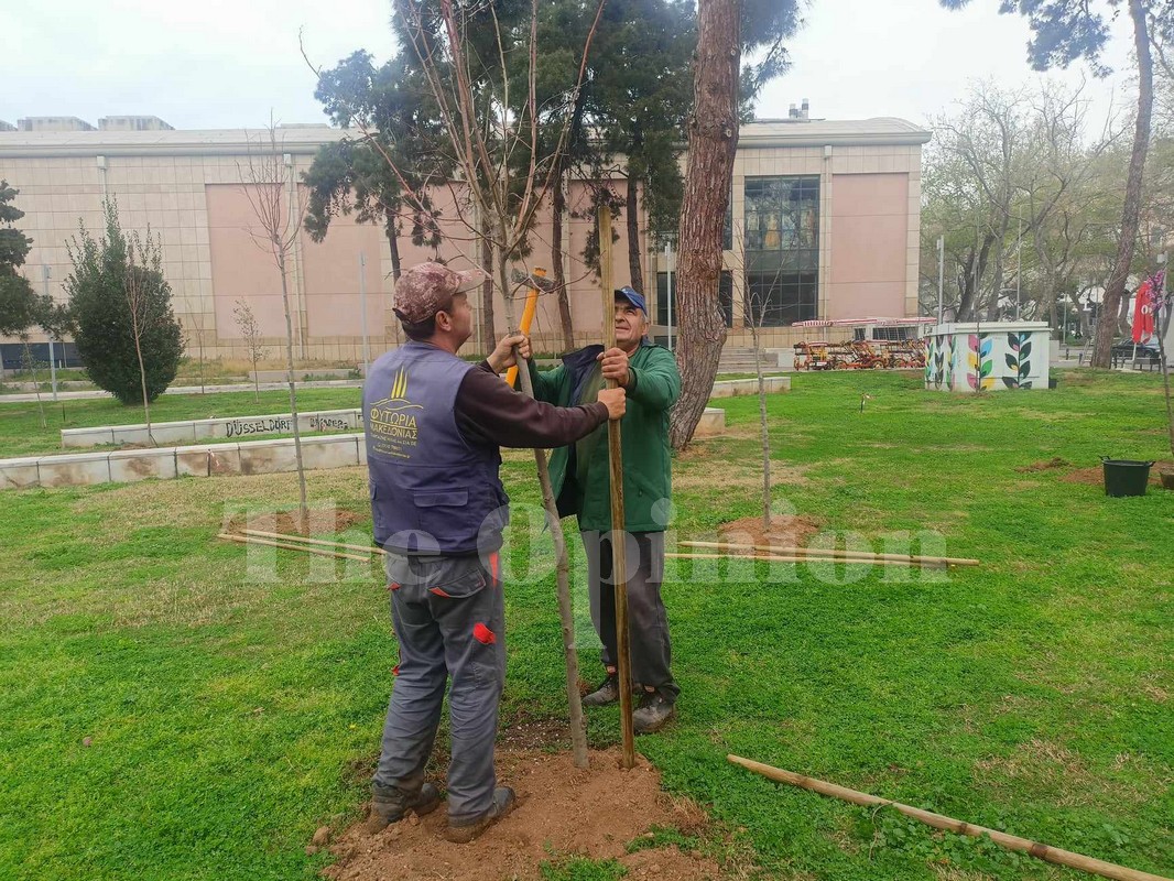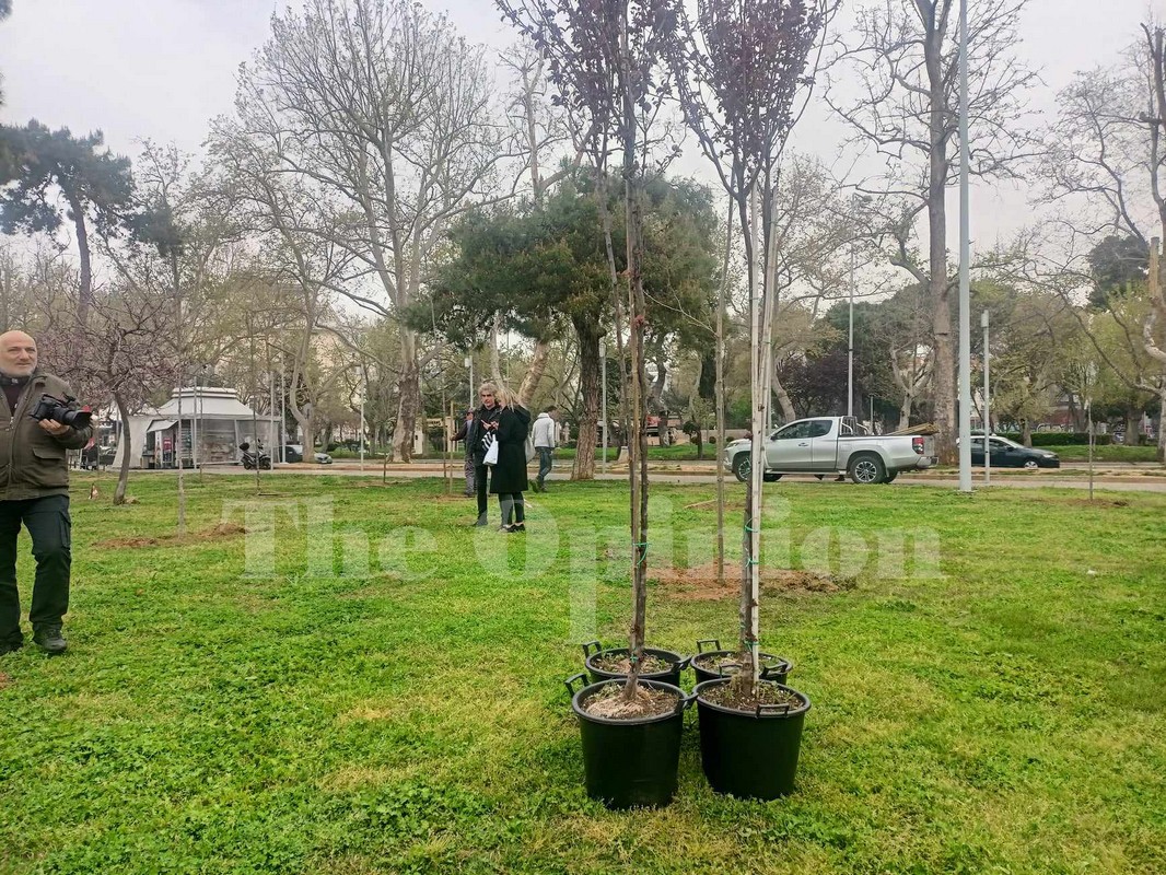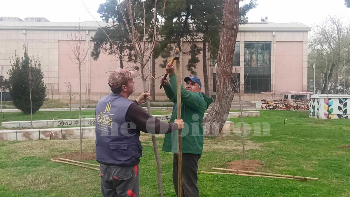 Περί τα 500 δέντρα φυτεύονται από το πρωί της Πέμπτης στο πάρκο που βρίσκεται μεταξύ του Βασιλικού Θεάτρου και του αγάλματος του Μεγάλου Αλεξάνδρου.
