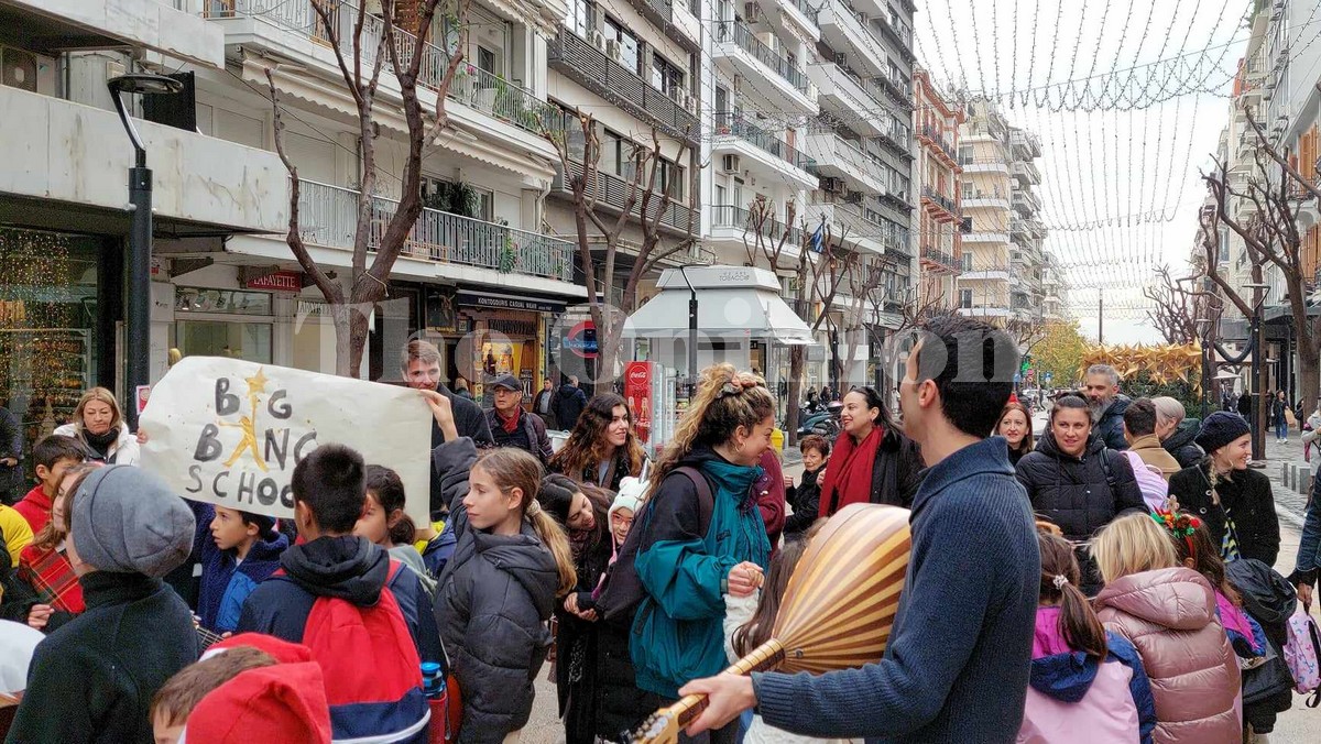 Με χριστουγεννιάτικες μελωδίες από παιδικές φωνές γέμισε ο πεζόδρομος της Αγίας Σοφίας, με τους μαθητές του Big Bang School να στηρίζουν για ακόμα μια φορά το έργο του περιοδικού «Σχεδία».