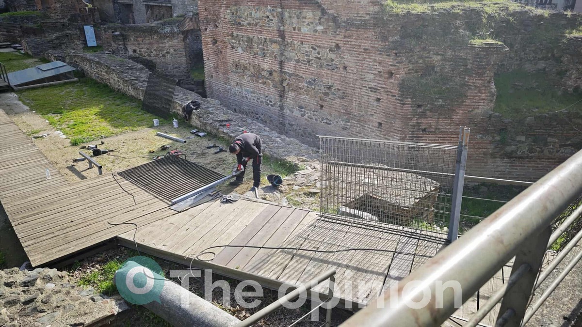 Στην επανατοποθέτηση κιγκλιδωμάτων στον αρχαιολογικό χώρο των ανακτόρων του Γαλερίου στην πλατεία Ναυαρίνου προχώρησε σήμερα, Πέμπτη η Εφορεία Αρχαιοτήτων Θεσσαλονίκης, αυτή τη φορά από την πλευρά της οδού Λόρδου Βύρωνος.