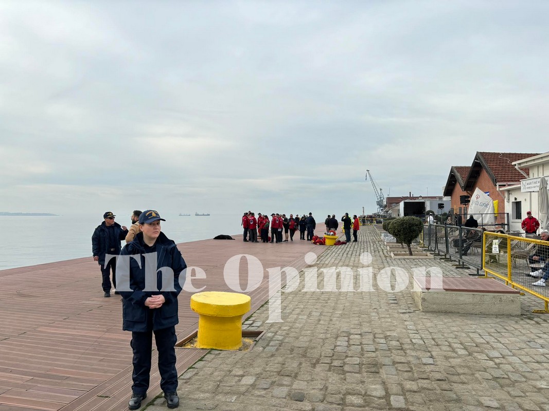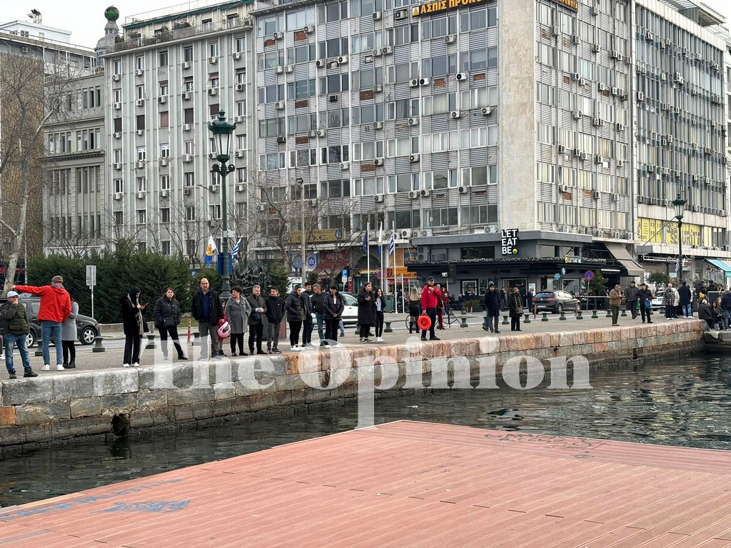 Η τελετή είναι προγραμματισμένη για τις 11:00, όμως ακόμα και μια ώρα πριν Θεσσαλονικείς έχουν πάρει τις θέσεις τους στο πλακόστρωτο της παλιάς παραλίας για να παρακολουθήσουν το γεγονός.