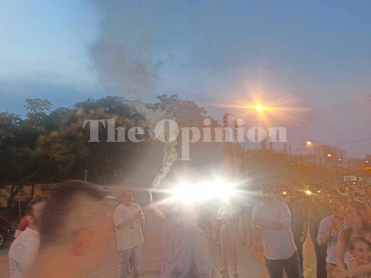 Νεολαίοι της ΝΔ συγκεντρώθηκαν κάτω από τα γραφεία της διοικούσας επιτροπής στην οδό Μιχαήλ Καλού, όπου εν μέσω συνθημάτων, άναψαν πυρσούς.