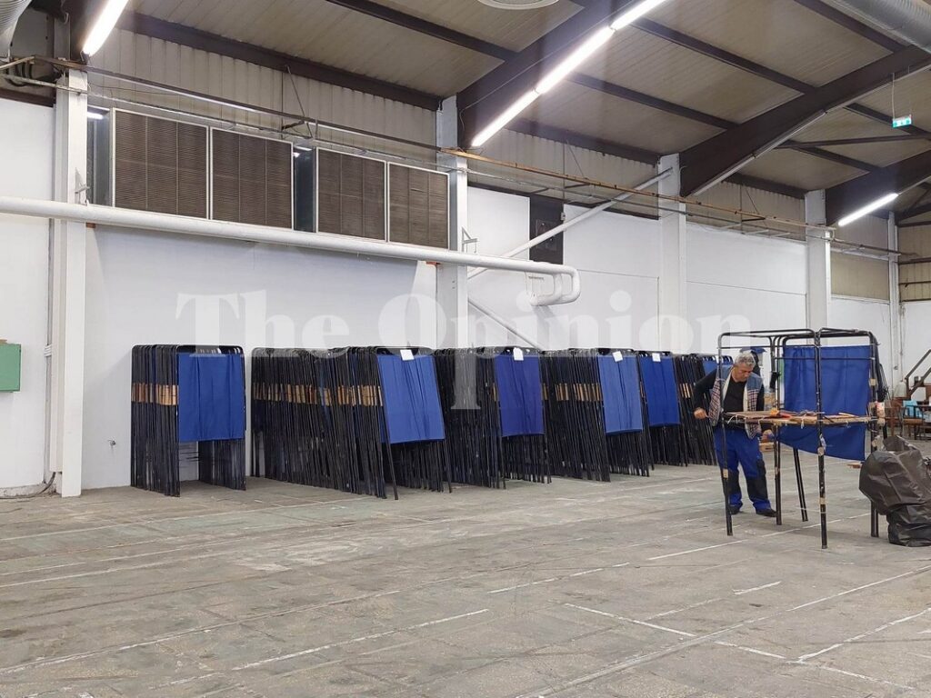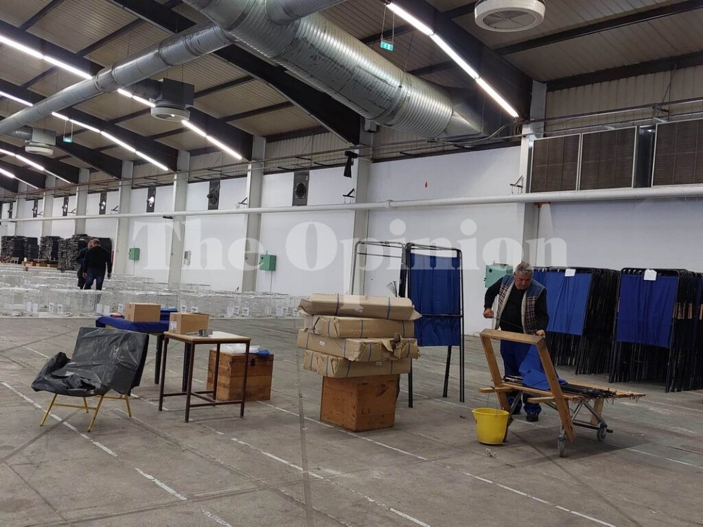 Το περίπτερο 5 της Διεθνούς Έκθεσης Θεσσαλονίκης έχει μεταμορφωθεί σε εργοτάξιο με τους εργαζόμενους του δήμου Θεσσαλονίκης να πραγματοποιούν όλες τις απαραίτητες εργασίες για τη σωστή διεξαγωγή των εκλογών.