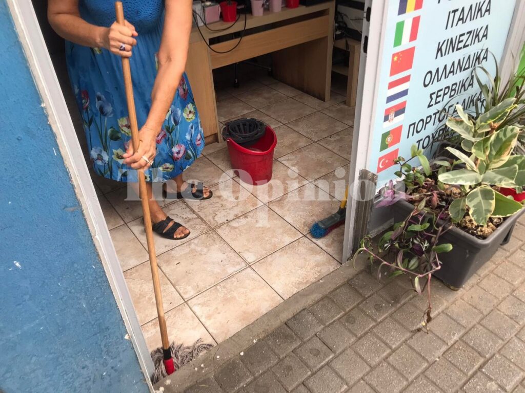 Στην οδό Σαπφούς, στην ίδια περιοχή οι εικόνες που καταγράφει ο φακός του TheOpinion είναι απελπιστικές. Ιδιοκτήτες καταστημάτων που πλημμύρισαν διώχνουν τα νερά με όποιο τρόπο μπορούν για να σώσουν ότι σώζεται.