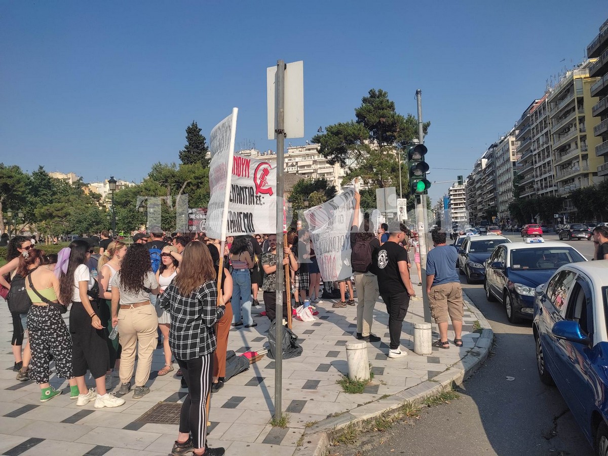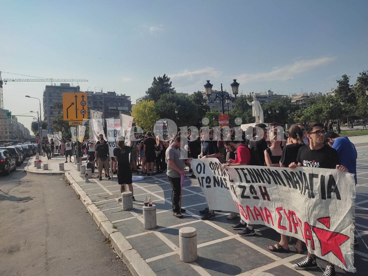 Πορεία διαμαρτυρίας βρίσκεται σε εξέλιξη στο κέντρο της Θεσσαλονίκης με αφορμή τη ναυτική τραγωδία με τους δεκάδες νεκρούς μετανάστες ανοιχτά της Πύλου.
