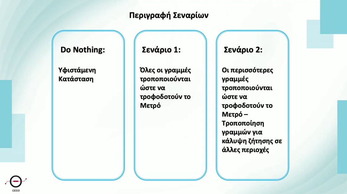 Δυο είναι τα σενάρια που παρουσιάστηκαν κατά τη διάρκεια της ημερίδας, το πρώτο να τροποποιηθούν όλες οι γραμμές ώστε να τροφοδοτούν το Μετρό και το δεύτερο να τροποποιηθούν οι περισσότερες γραμμές ώστε να τροφοδοτούν το Μετρό, αλλά και για να καλύψουν τη ζήτηση σε άλλες περιοχές.