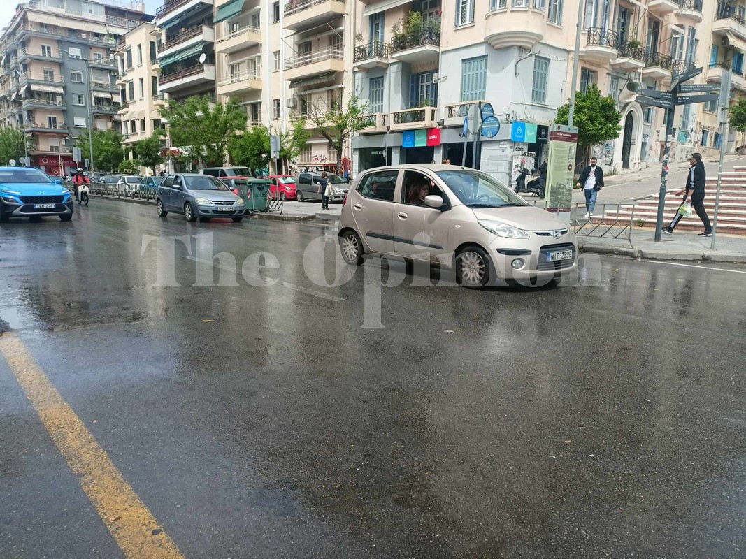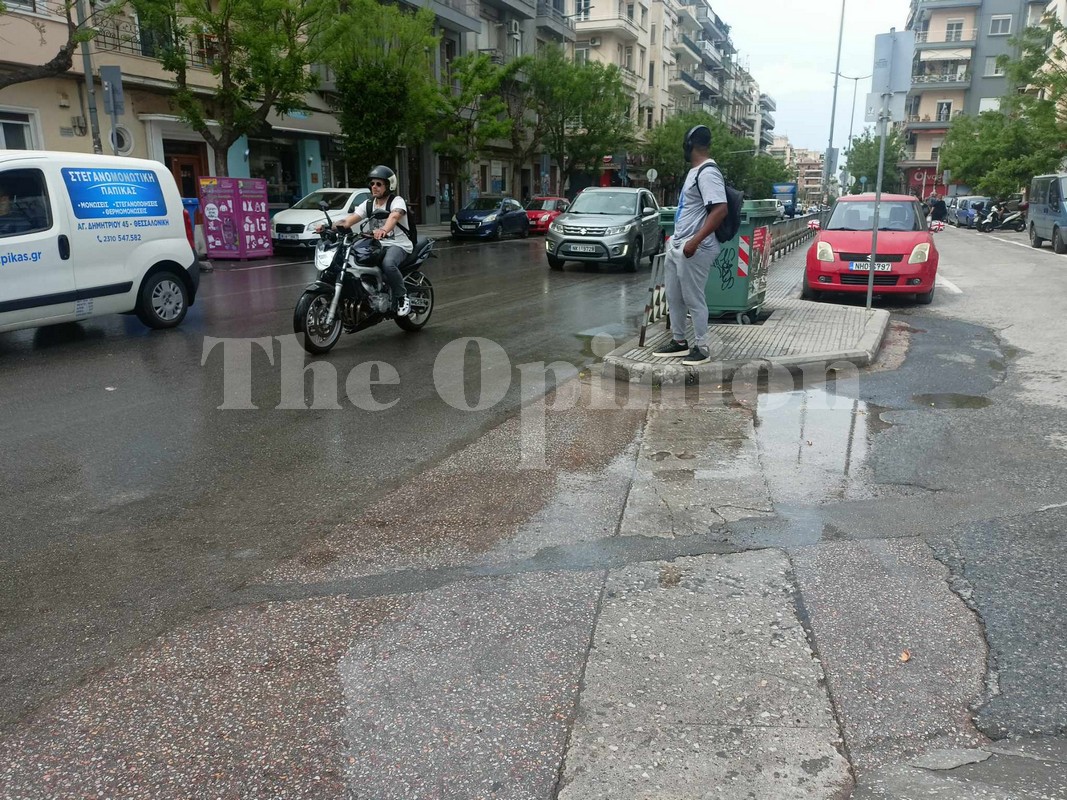 Σε «ποτάμι» μετατράπηκε η Αγίου Δημητρίου το μεσημέρι της Τετάρτης 17 Απριλίου, στο κέντρο της Θεσσαλονίκης.