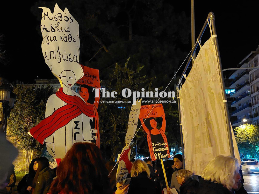 Στη συγκέντρωση ξεχώρισε το πανό που ξεκινούσε από το άγαλμα του Βενιζέλου και κατέληγε στην οδό Εγνατία, στο οποίο αναγράφονται τα ονόματα όλων των δολοφονημένων γυναικών τα τελευταία δύο χρόνια.