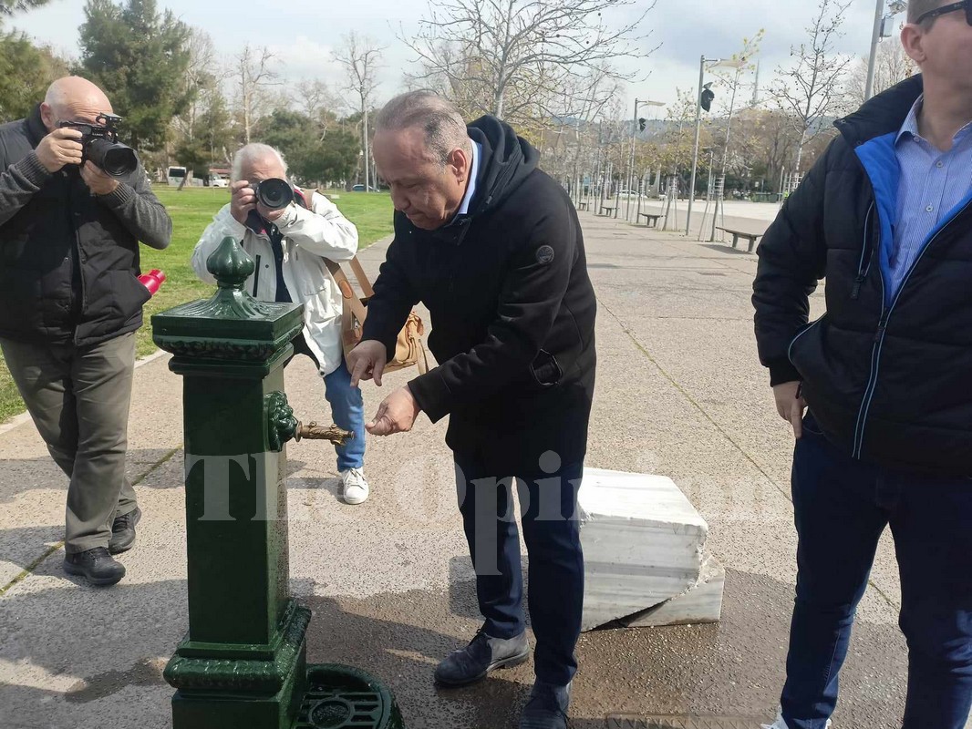 «Αποδίδουμε 10 βρύσες σε αυτό το τοποσημο της πόλης, στη Νέα Παραλία, ώστε οι πολίτες και οι επισκέπτες να έχουν ελεύθερη πρόσβαση σε καθαρό και πόσιμο νερό», δήλωσε αρχικά ο Στέλιος Αγγελούδης.
