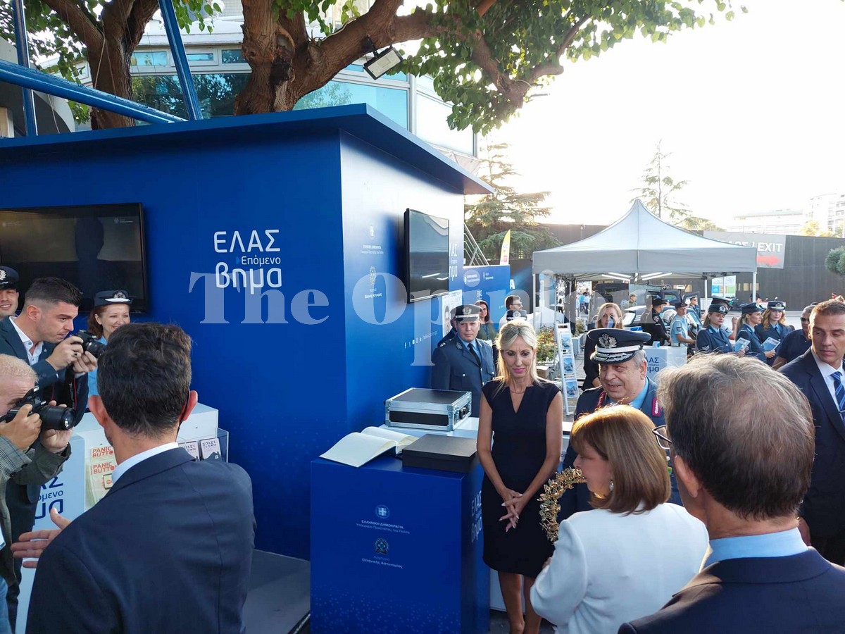 Κατά τη διάρκεια της βόλτας της, ξεναγήθηκε από τον Γενικό Αστυνομικό Διευθυντή Θεσσαλονίκης, Χρήστο Μπουλούμπαση, στο περίπτερο της Ελληνικής Αστυνομίας