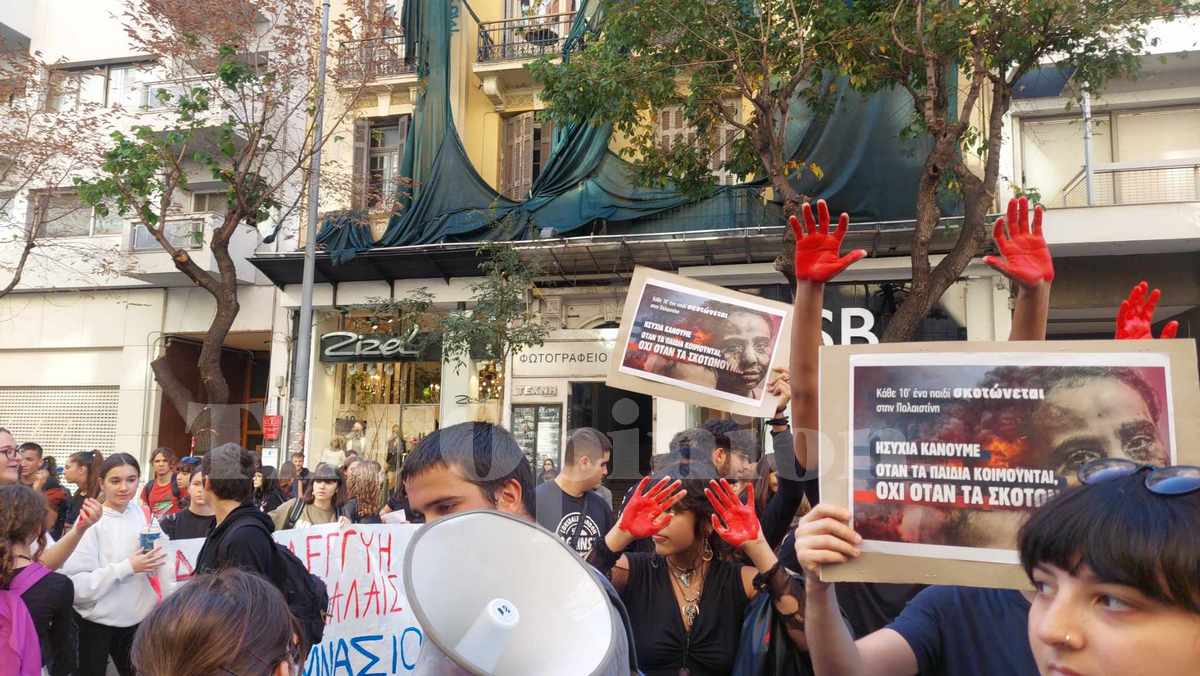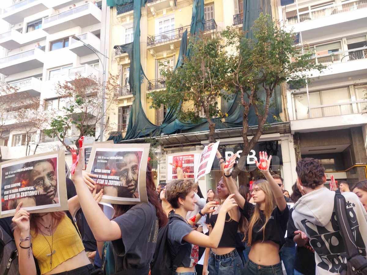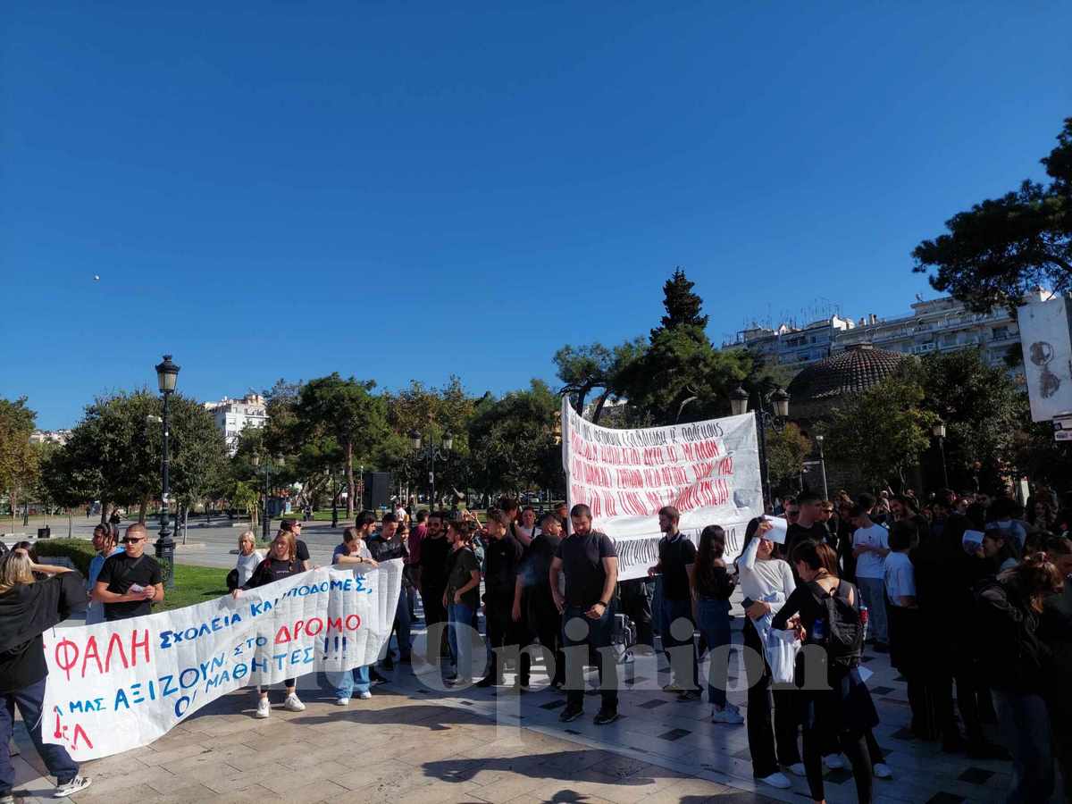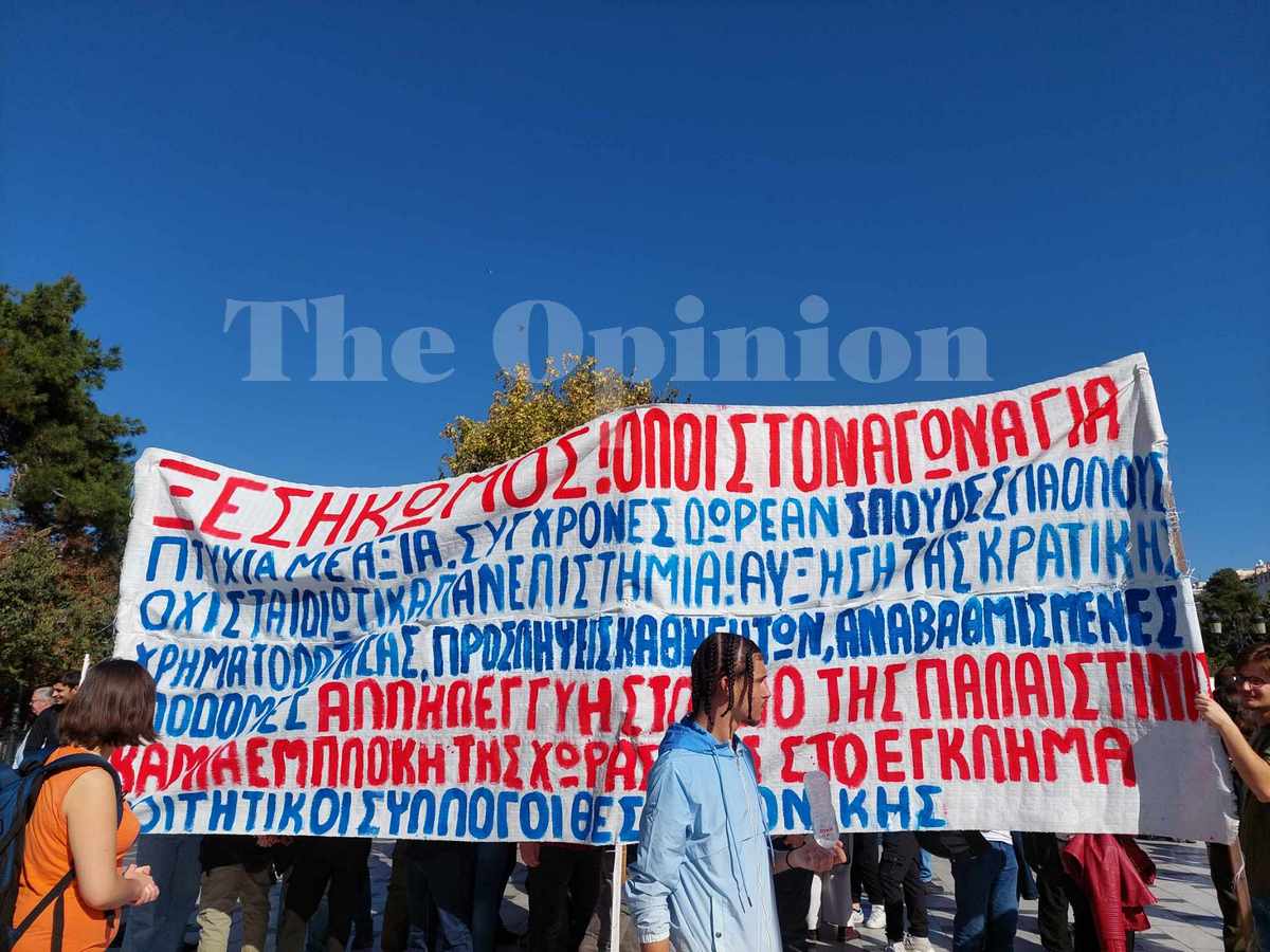 Από πλευράς της, η πρόεδρος του συλλόγου φοιτητών Χημικού του ΑΠΘ, Χριστίνα Σταμούλη, είπε πως σήμερα μαθητές, φοιτητές και εκπαιδευτικοί βγαίνουν στους δρόμους, φωνάζουν και διεκδικούν. «Θέλουμε εδώ και τώρα πτυχία με αξία και δωρεάν σπουδές. Το τελευταίο διάστημα παρακολουθούμε το έγκλημα που συμβαίνει στην Παλαιστίνη. Καταδικάζουμε την εμπλοκή της χώρας μας στη σφαγή του παλαιστινιακού λαού και διεκδικούμε να σταματήσει κάθε οικονομική, πολιτική στρατηγική και στρατιωτική συνεργασία της χώρας μας με το κράτος δολοφόνο του Ισραήλ”, σχολίασε. “Ολα αυτά τα λέμε σήμερα γιατί την ίδια ώρα που μας λένε ότι δεν έχουμε λεφτά για τις σπουδές μας δίνουν δισεκατομμύρια ευρώ στο ΝΑΤΟ», είπε.