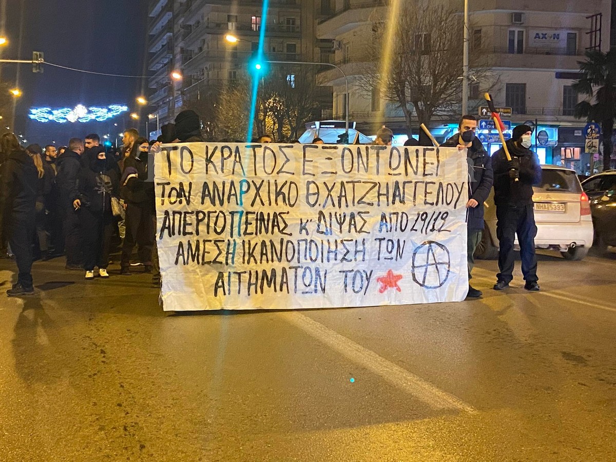 Πορεία αντιεξουσιαστών είναι σε εξέλιξη αυτή την ώρα στη Θεσσαλονίκη για τον απεργό πείνας και δίψας Θάνο Χατζηαγγέλου.