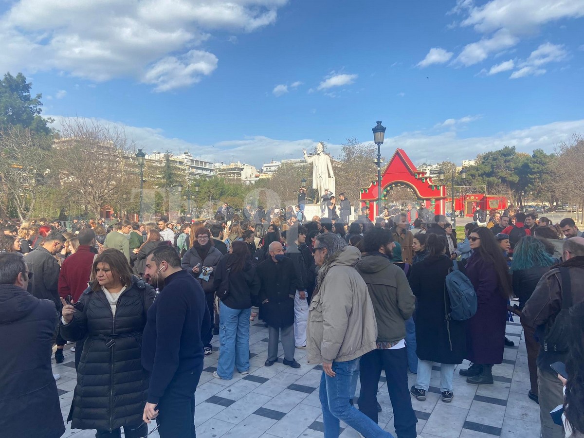 Η κινητοποίηση πλαισιώνεται από πλήθος ατόμων του καλλιτεχνικού χώρου της πόλης, που συγκεντρώθηκαν στο Άγαλμα του Βενιζέλου.