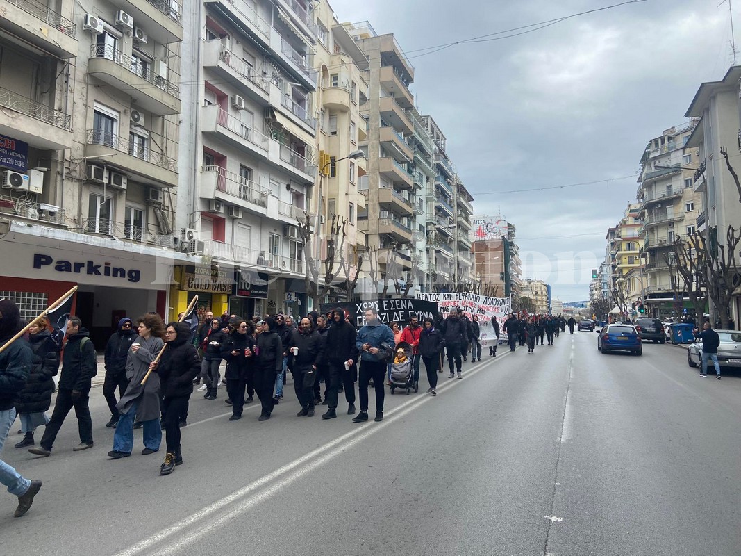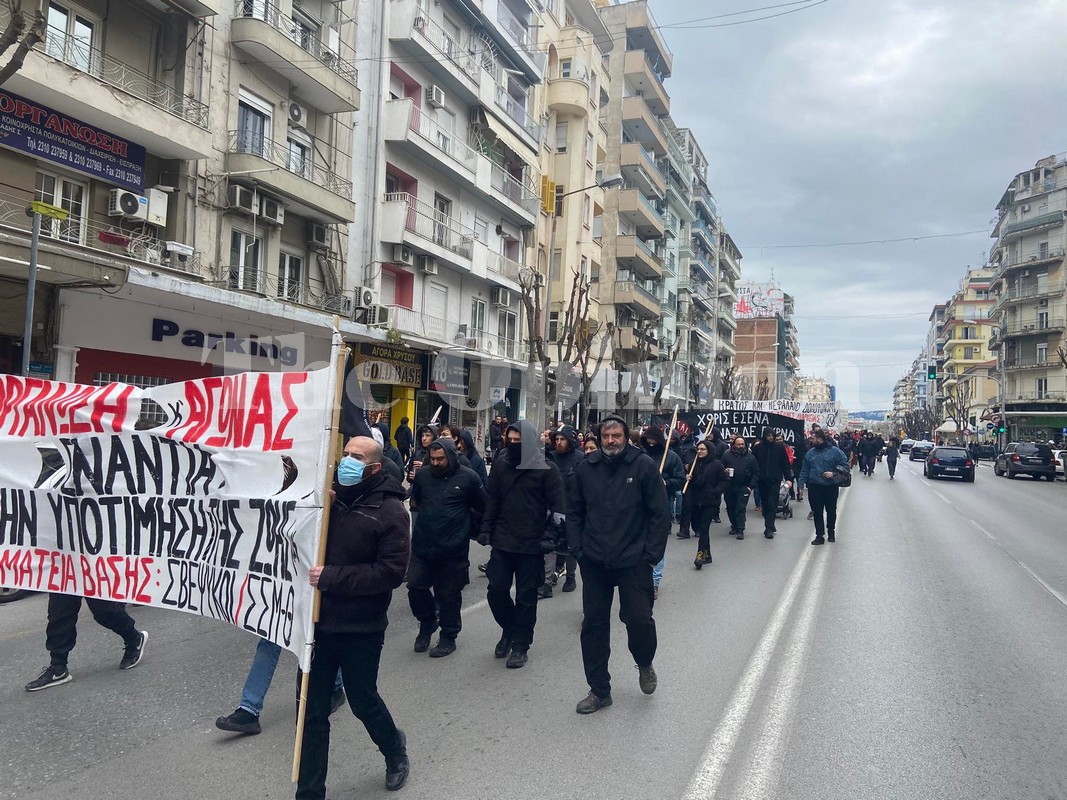 Πορεία μελών του αντιεξουσιαστικού χώρου και άλλων σωματείων βρίσκεται σε εξέλιξη στο κέντρο της Θεσσαλονίκης.