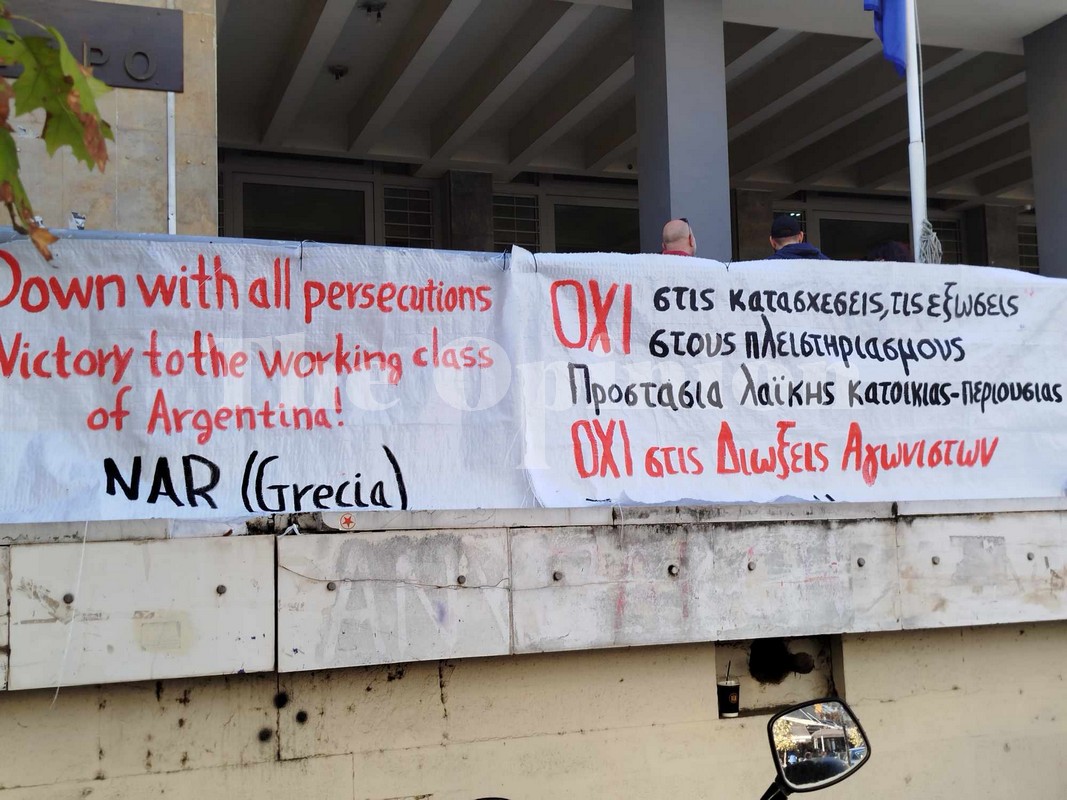 Αυτή την ώρα πραγματοποιείται συγκέντρωση αλληλεγγύης στους δύο διωκόμενους, από το Συντονισμό Συλλογικοτήτων Θεσσαλονίκης, με σκοπό την απόσυρση όλων των κατηγοριών και την παρεμπόδιση κατάσχεσης λαϊκών κατοικιών από πλειστηριασμούς.