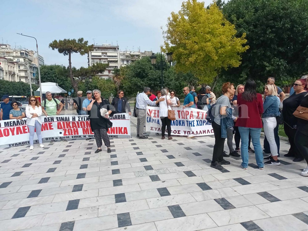 Συγκέντρωση διαμαρτυρίας πραγματοποιούν το πρωί της Τρίτης μέλη της Ένωσης Δημοσιοϋπαλληλικών Οργανώσεων Θεσσαλονίκης, αλλά και του ΠΑΜΕ, στην Αριστοτέλους, στο άγαλμα Βενιζέλου.