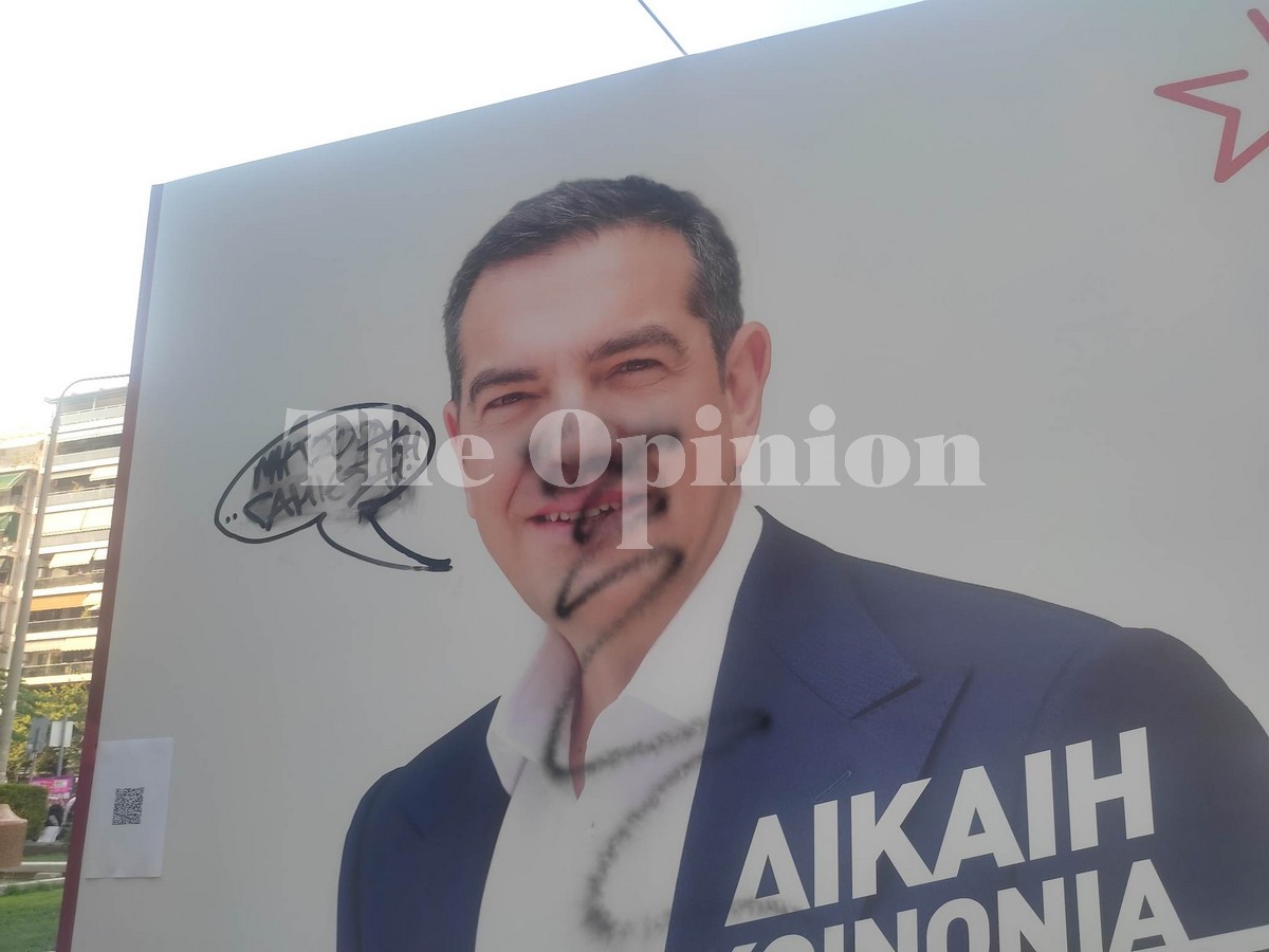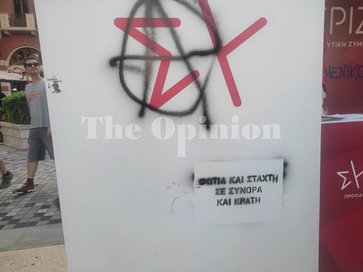 Θεσσαλονίκη: Συνθήματα στο περίπτερο του ΣΥΡΙΖΑ στην Αγίας Σοφίας (ΦΩΤΟ)