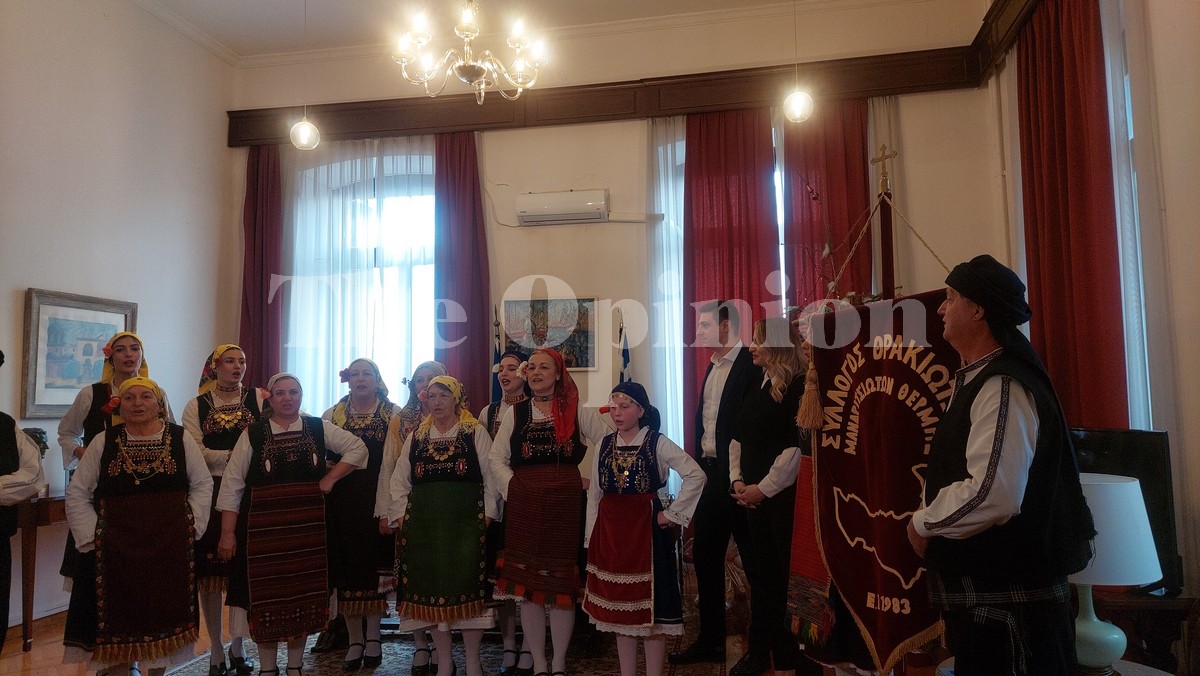 Η Έλενα Σώκου και ο Γιάννης Παπαγεωργίου, συντονιστές στο γραφείο του Πρωθυπουργού στη Βόρεια Ελλάδα, υποδέχθηκαν τον Σύλλογο Θρακιωτών Μανδριτσιωτών Θρακιωτών Θέρμης, φορώντας τις παραδοσιακές τους φορεσιές.