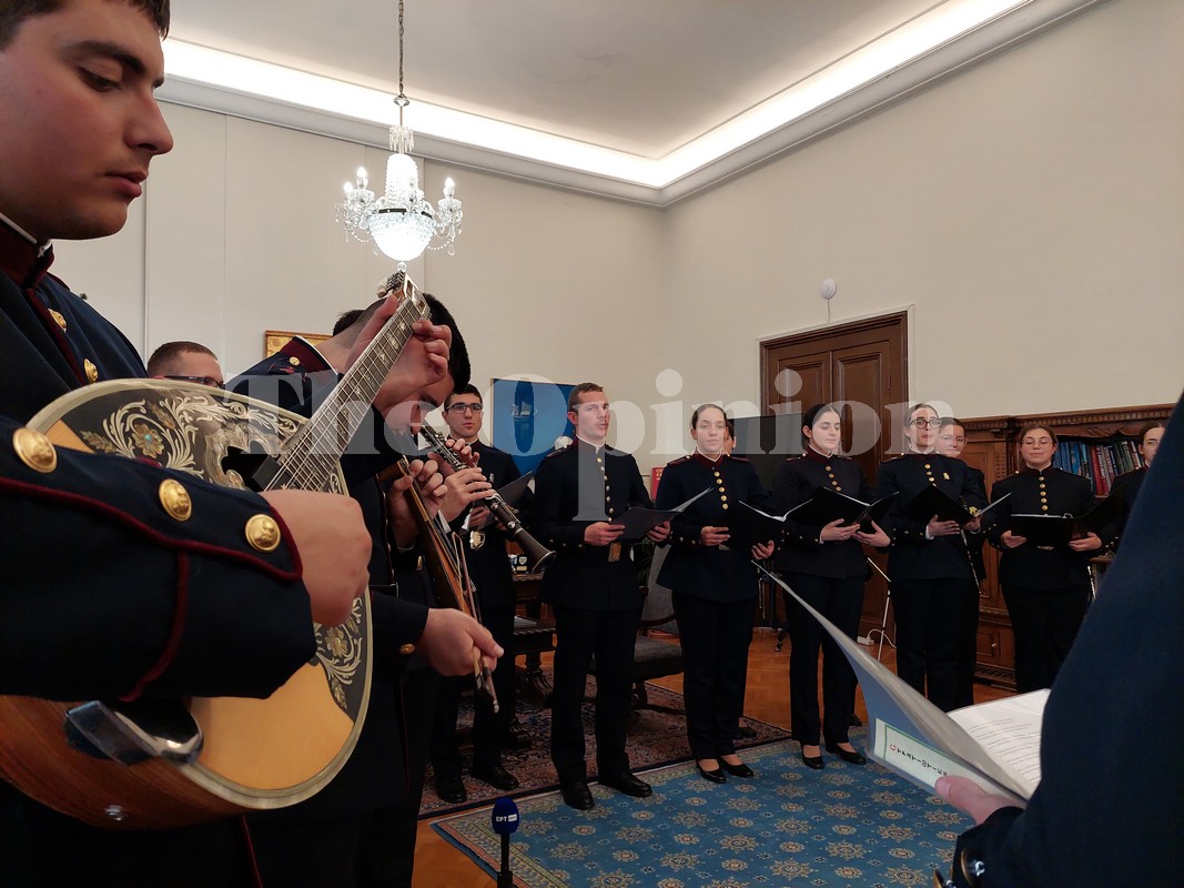 Η μπάντα της Σχολής Στρατιωτικών Αξιωματικών Σωμάτων «τα έψαλε» στον υφυπουργό Εσωτερικών για θέματα Μακεδονίας και Θράκης, Στάθη Κωνσταντινίδη, ο οποίος τους υποδέχτηκε με περίσσια χαρά στο γραφείο του.