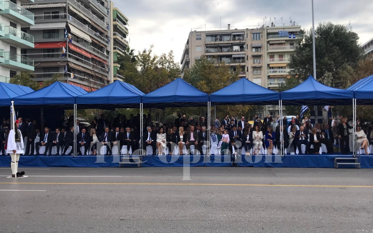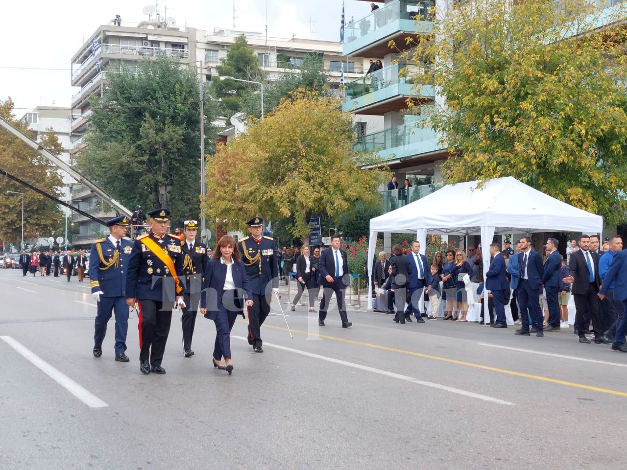 Την Κατερίνα Σακελλαροπούλου υποδέχτηκε ο Περιφερειάρχης Κεντρικής Μακεδονίας Απόστολος Τζιτζικώστας και αυτό σήμανε την έναρξη της παρέλασης, η οποία αναμένεται να έχει μεγάλη διάρκεια.
