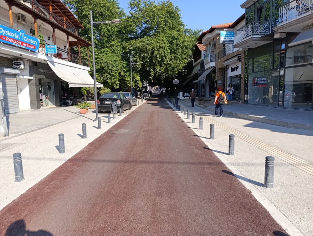 Ο δρόμος απέκτησε οδούς ήπιας κυκλοφορίας, προάγοντας την ασφαλή μετακίνηση πεζών και οδηγών. Ιδιαίτερη έμφαση δόθηκε στην ενοποίηση του επιπέδου δρόμου και πεζοδρομίων. Η πράσινη ταυτότητα του έργου ενισχύθηκε με νέες φυτεύσεις και καλαίσθητα παρτέρια, ενώ η αναβάθμιση του φωτισμού με σύγχρονα LED συστήματα βελτιώνει την ασφάλεια και αναδεικνύει την αγορά τις βραδινές ώρες.