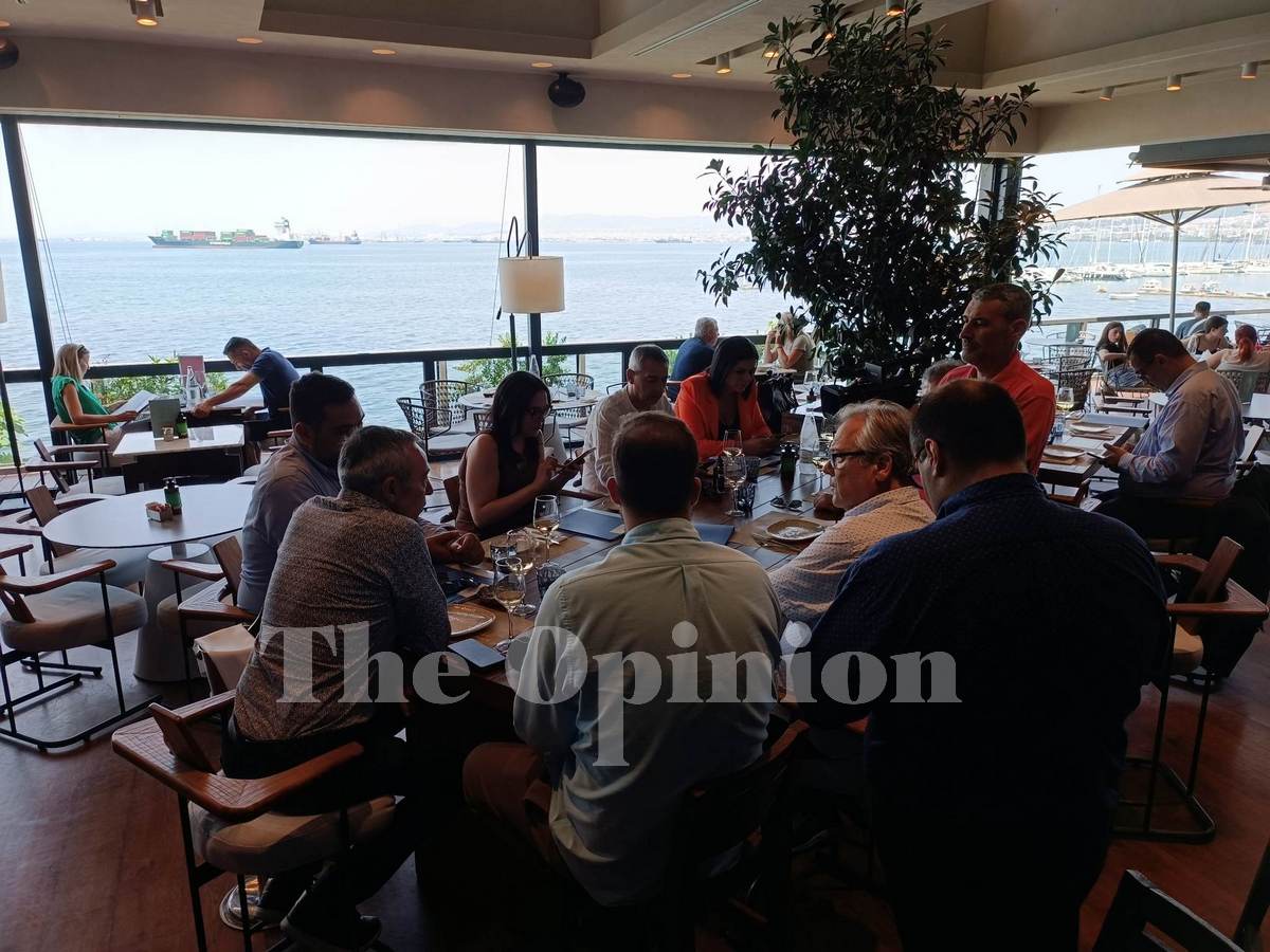 Χαλαρή συνάντηση με δημοσιογράφους είχαν στελέχη της ΝΔ Θεσσαλονίκης το μεσημέρι του Σαββάτου σε παραλιακό μαγαζί της Καλαμαριάς.