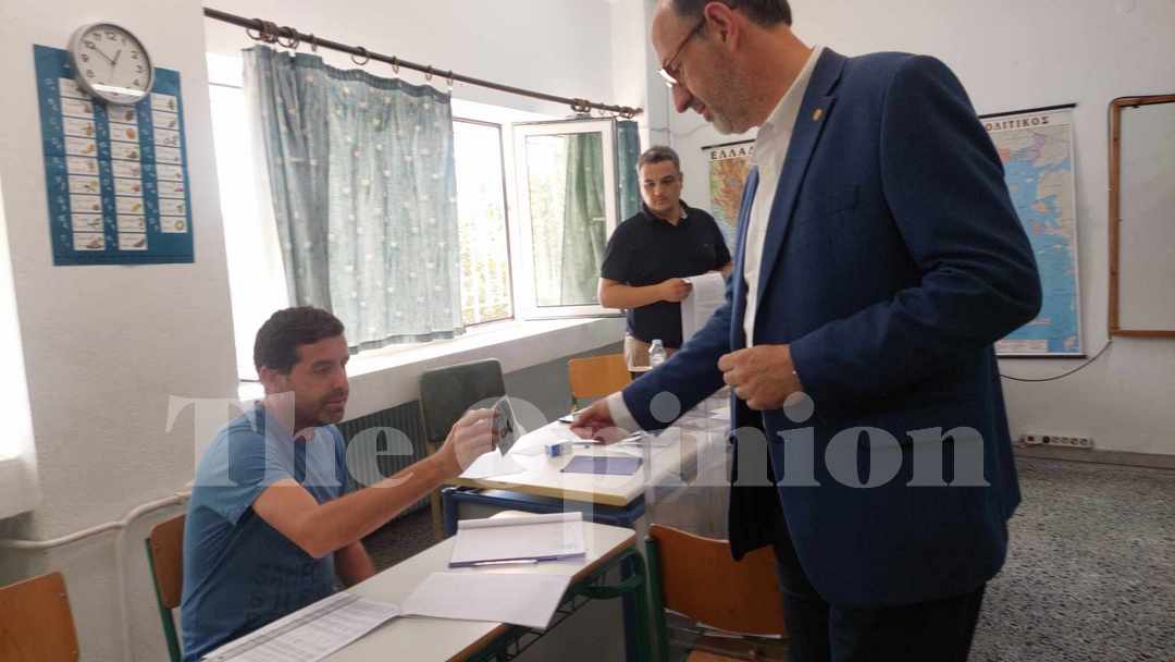 Ο υποψήφιος δήμαρχος, άσκησε το εκλογικό του δικαίωμα στο σχολικό συγκρότημα επί των οδών Μαρτίου με Μαρίας Κάλλας.