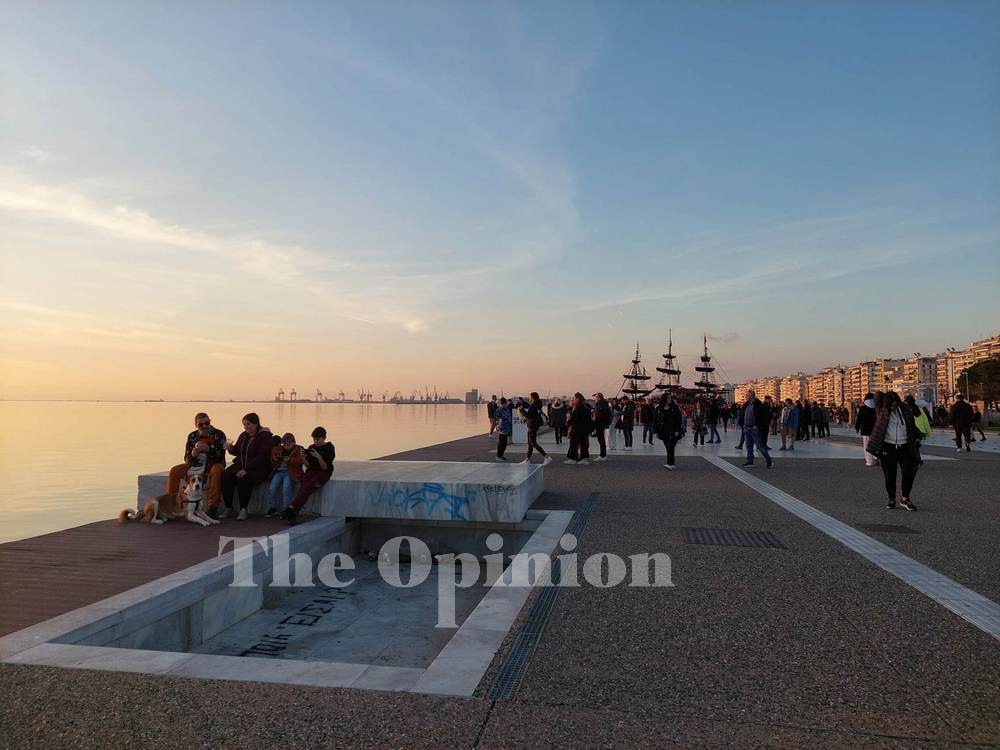 Οι ιδιαίτερα καλές καιρικές συνθήκες, δεδομένου του ότι το ημερολόγιο δείχνει μια μέρα μετά την γιορτή των Χριστουγέννων, “έβγαλαν στους δρομους” κατοίκους αλλά και επισκέπτες της Θεσσαλονίκης προκειμένου να κάνουν μια βόλτα την ώρα του ηλιοβασιλέματος.