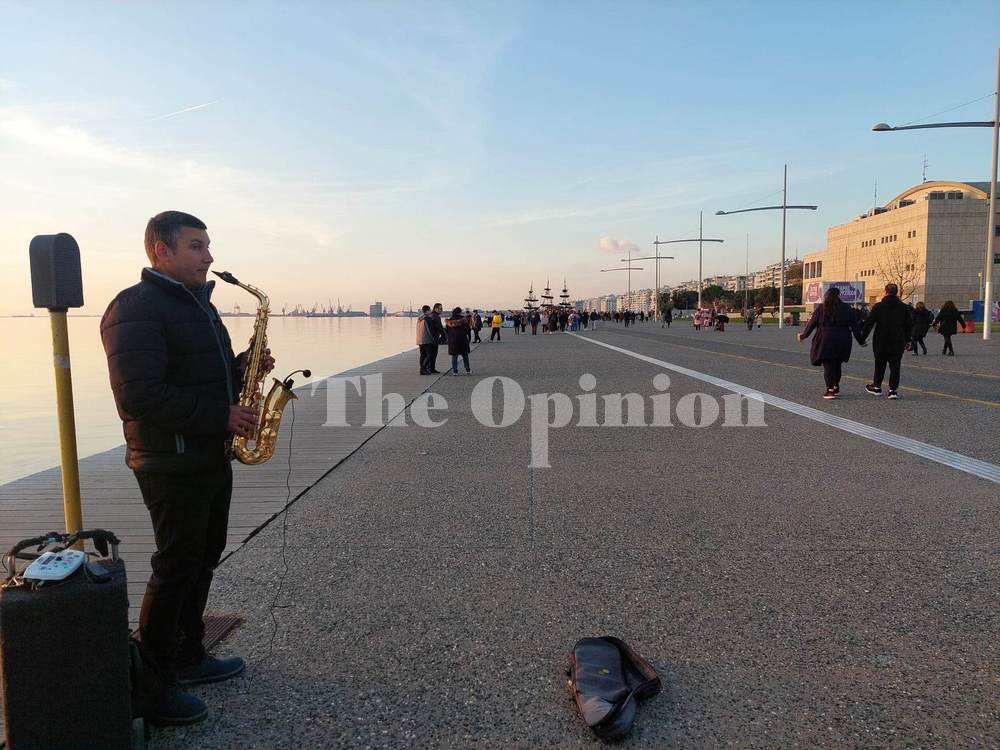 Από την νέα Παραλία, δεν λείπουν οι μουσικοί, που ο κόσμος κοντοστέκεται και απολαμβάνει, με φόντο το ηλιοβασίλεμα.