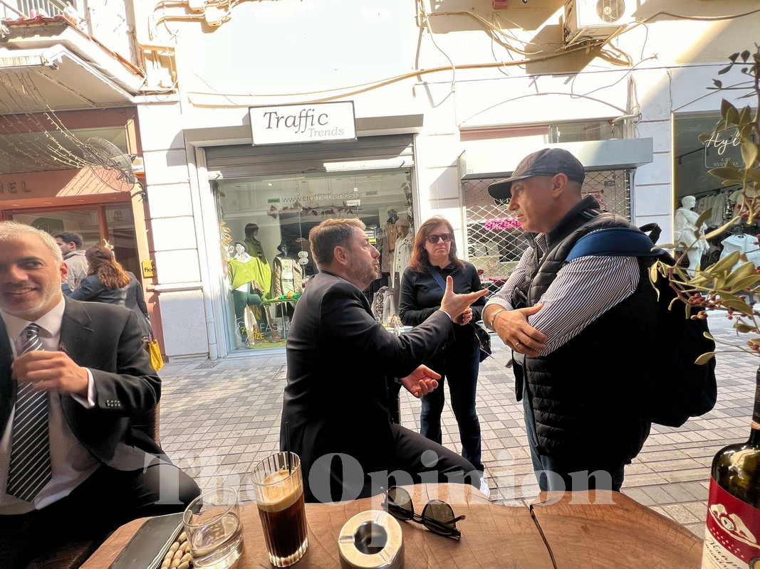 Στη συνέχεια, ο πρόεδρος και βουλευτής Α’ Θεσσαλονίκης επισκέφτηκε καφετέρια στο κέντρο, απόλαυσε τον καφέ του, συνοδευόμενο με διαφορά εδέσματα που του έφεραν στο τραπέζι και παράλληλα επικοινώνησε και φωτογραφήθηκε με πολίτες που περνούσαν από το σημείο.