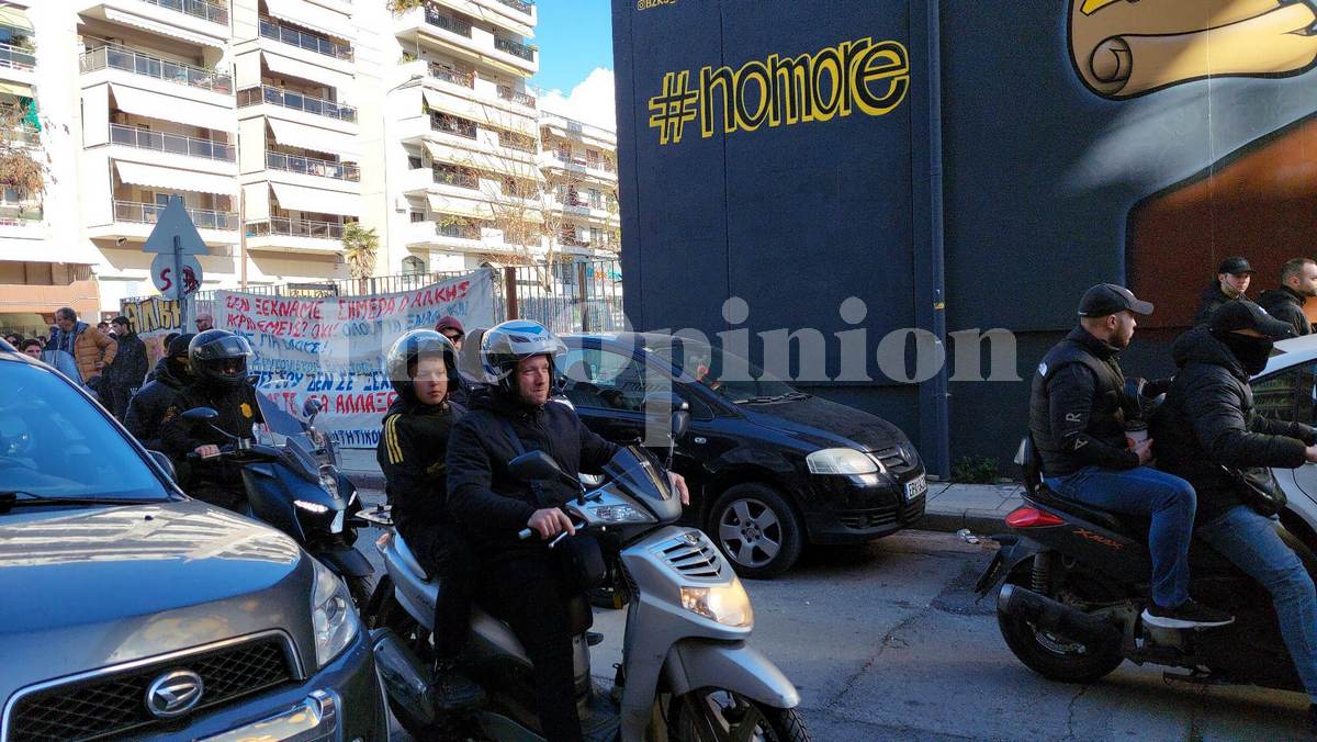 Λίγο μετά τις 13:00 η κυκλοφορία επί της οδού Νικολάου Πλαστήρα έκλεισε, με του κιτρινόμαυρους να συγκεντρώνονται στο σημείο που δολοφονήθηκε ο 19χρονος το Φεβρουάριο του 2022.