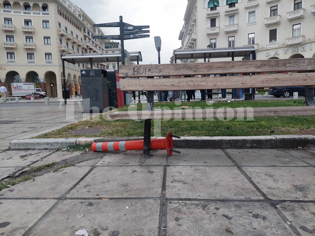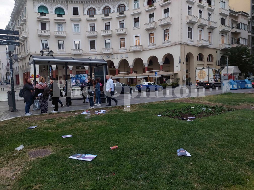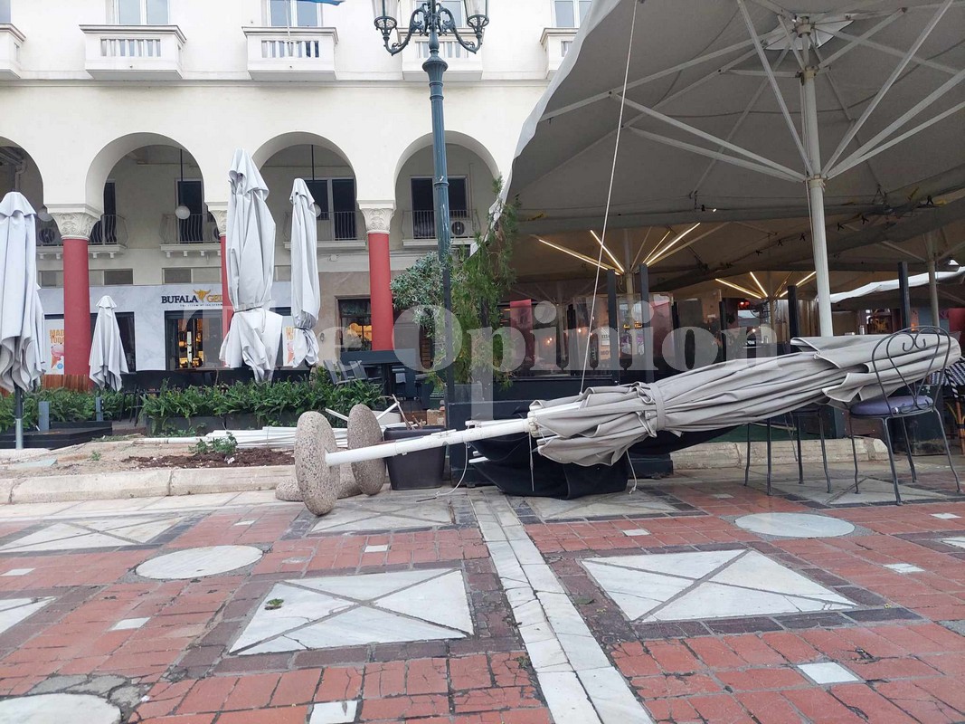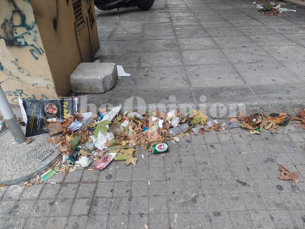 Λόγω των ανέμων, τα σκουπίδια από τους κάδους στο κέντρο της πόλης έχουν διασκορπιστεί, με τους εργαζόμενους του δήμου να προσπαθούν να τα μαζέψουν, για να μην βρεθούν είτε σε κάποιο φρεάτιο είτε καταλήξουν στον Θερμαϊκό κόλπο.