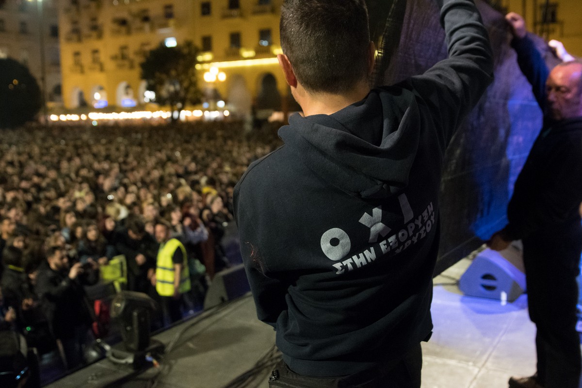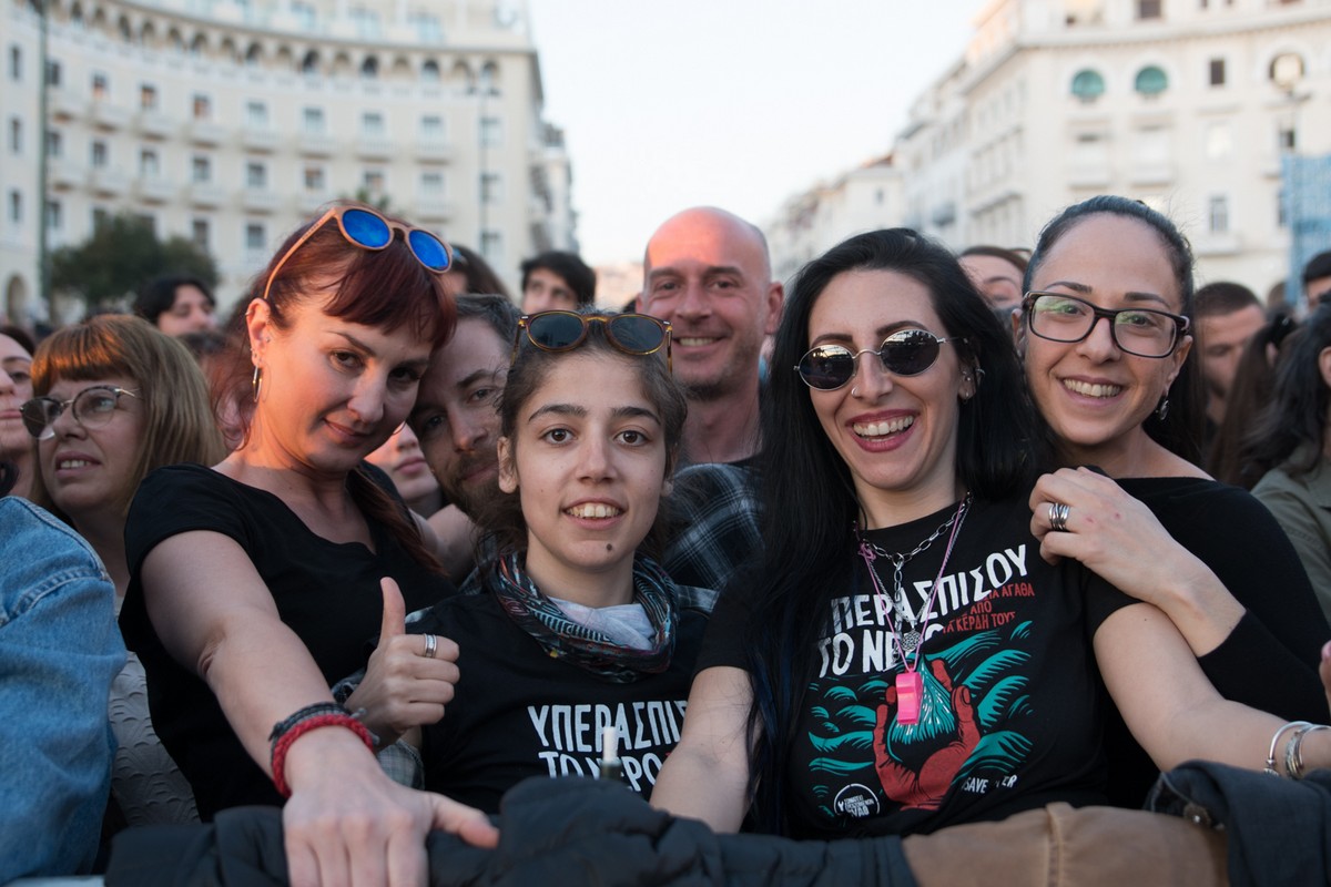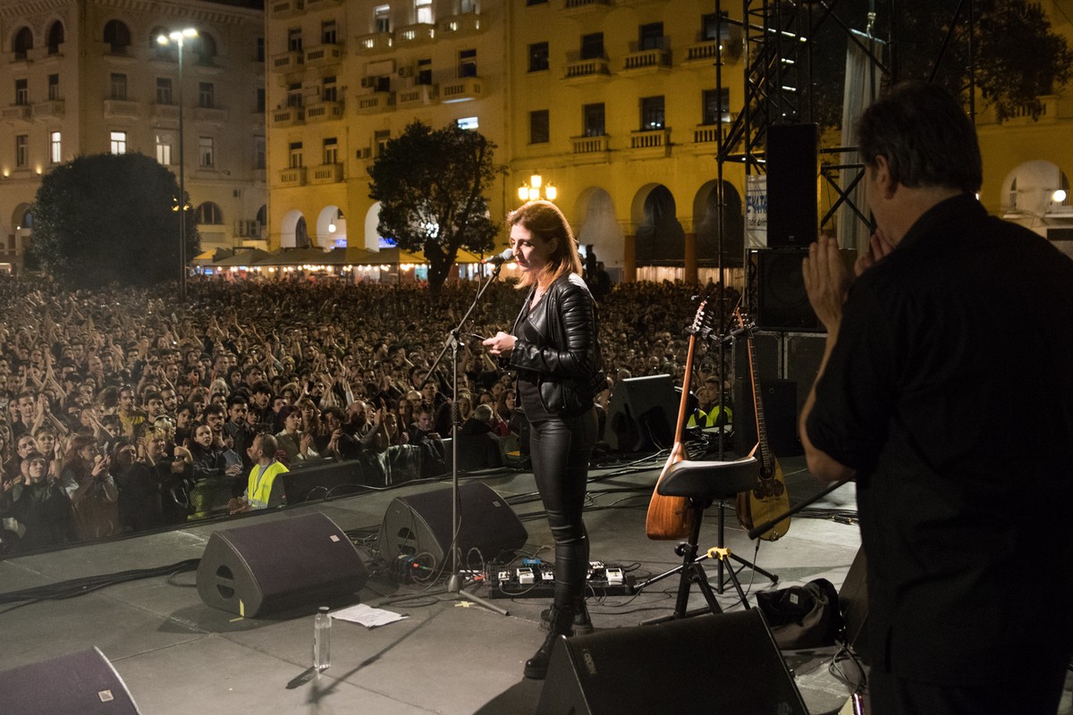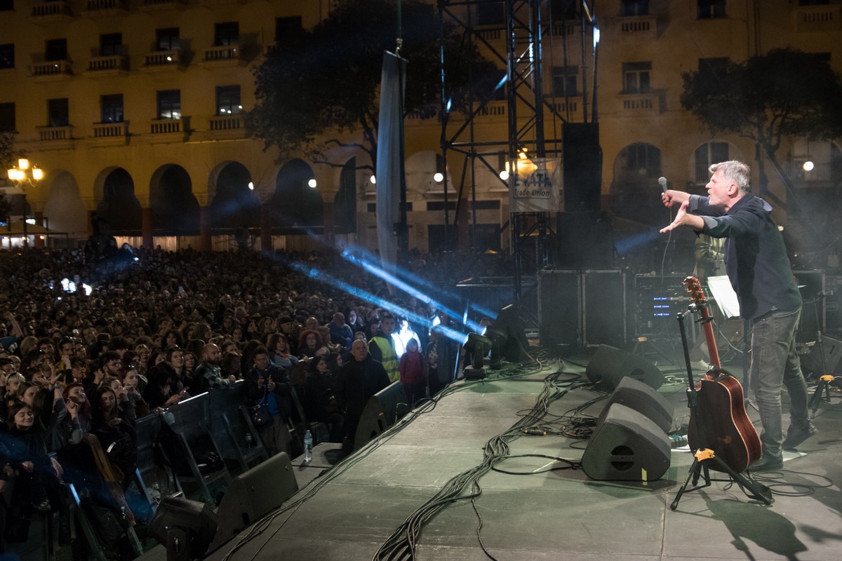 Χιλιάδες κόσμου συγκεντρώθηκαν στην πλατεία Αριστοτέλους και ένωσαν τις φωνές τους με αυτές των Θανάση Παπακωνσταντίνου, Δημήτρη Μυστακίδη, Φοίβου Δεληβοριά, Φωτεινής Βελεσιώτου, Χειμερινών Κολυμβητών και του σχήματος της «Πριγκηπέσσας».