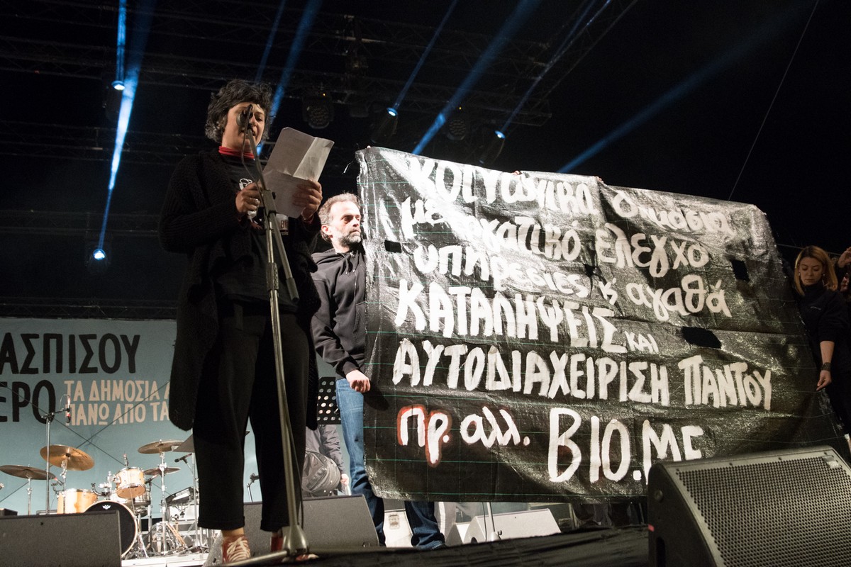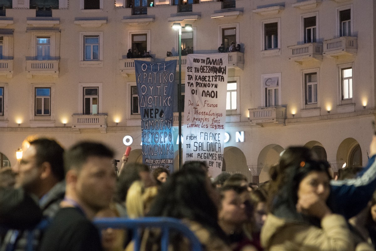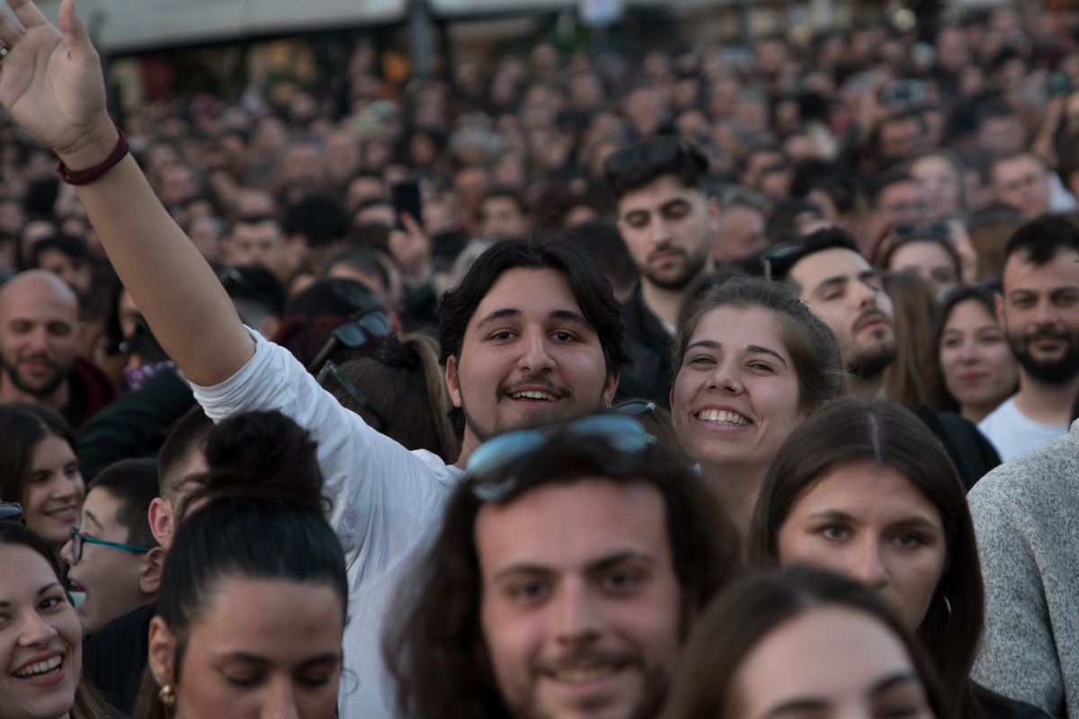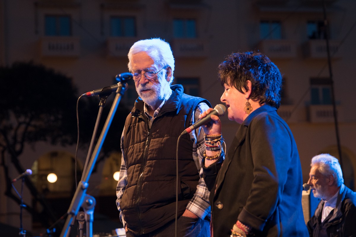 Χιλιάδες κόσμου συγκεντρώθηκαν στην πλατεία Αριστοτέλους και ένωσαν τις φωνές τους με αυτές των Θανάση Παπακωνσταντίνου, Δημήτρη Μυστακίδη, Φοίβου Δεληβοριά, Φωτεινής Βελεσιώτου, Χειμερινών Κολυμβητών και του σχήματος της «Πριγκηπέσσας».