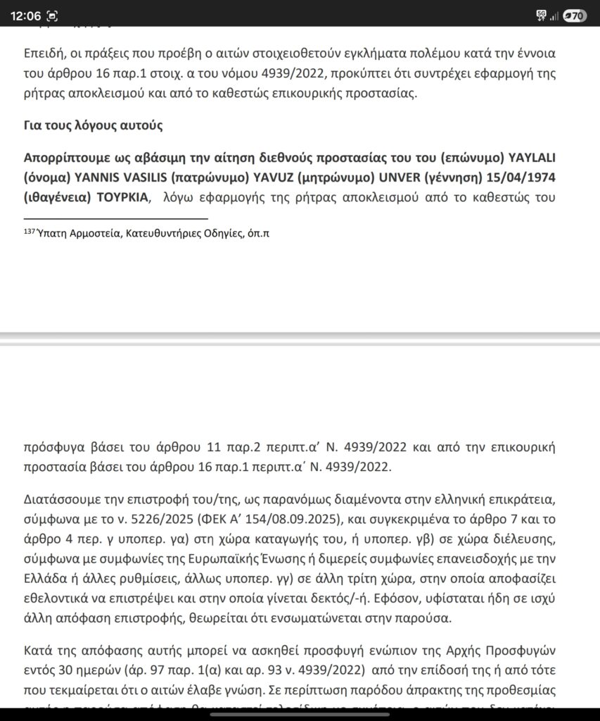 Διαβάστε εδώ όλη την απόφαση- ντροπή! Δεν του δίνουν άσυλο επειδή ως στρατιώτης συμμετείχε σε εγκλήματα του τουρκικού στρατού!