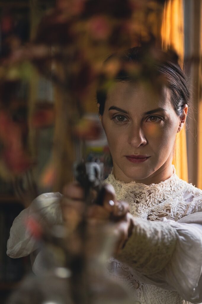 Η Χριστίνα Δαγκάκη υποδύεται την Έντα Γκάμπλερ, από το ομώνυμο θεατρικό έργο του Νορβηγού συγγραφέα και σκηνοθέτη Henrik Ibsen.