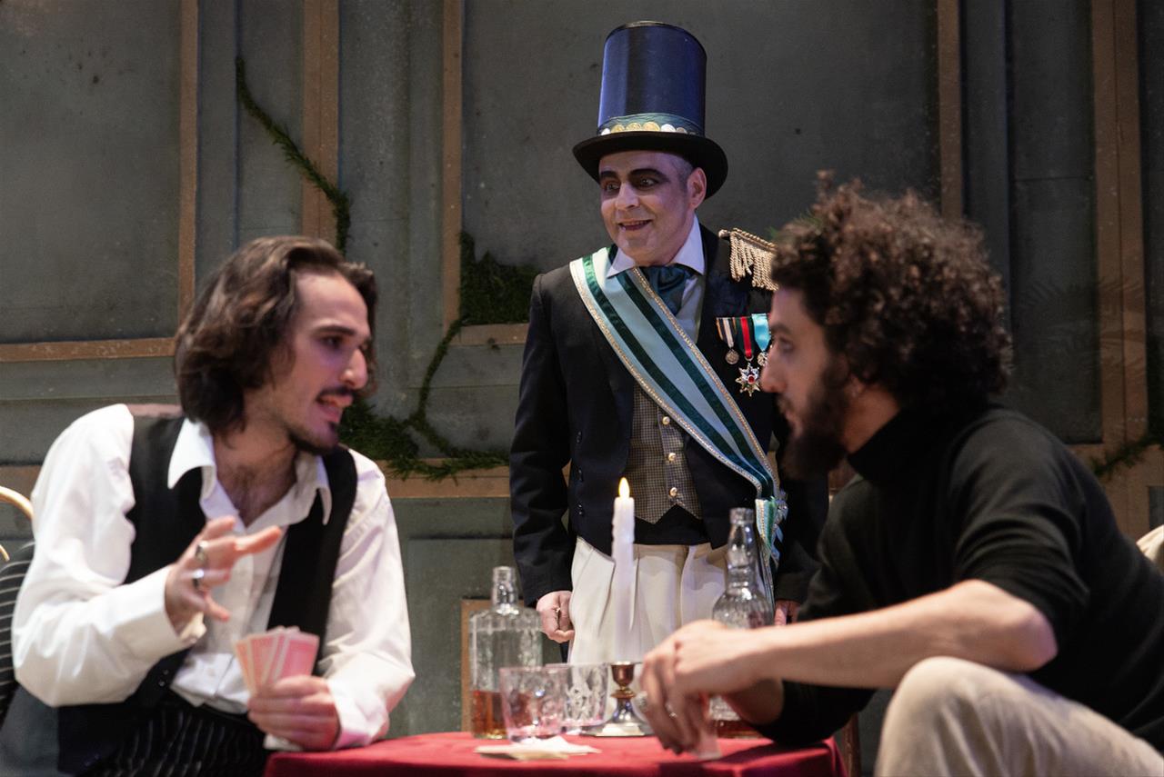 Απ’ τη μία τους «εκμεταλλεύεται»… Ο Γκόγκολ είναι μία πολύ ιδιαίτερη φιγούρα συγγραφέα. Έχει μια πολύ βαθιά σάτιρα, που δεν μένει στο πρώτο επίπεδο της εκμετάλλευσης. Δηλαδή, ο Χλιεστακόφ παίρνει ζωή από αυτό. Το γλεντάει μαζί με τον Οσίπ αυτό που συμβαίνει.