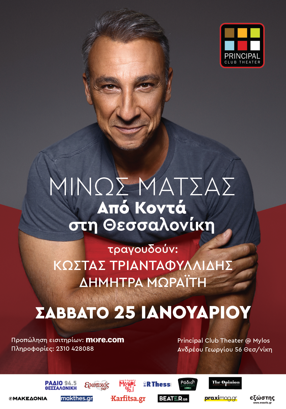Ο Μίνως Μάτσας παρουσιάζει τη μουσική παράσταση «Από Κοντά» το Σάββατο, 25 Ιανουαρίου, στο Principal Club Theater.