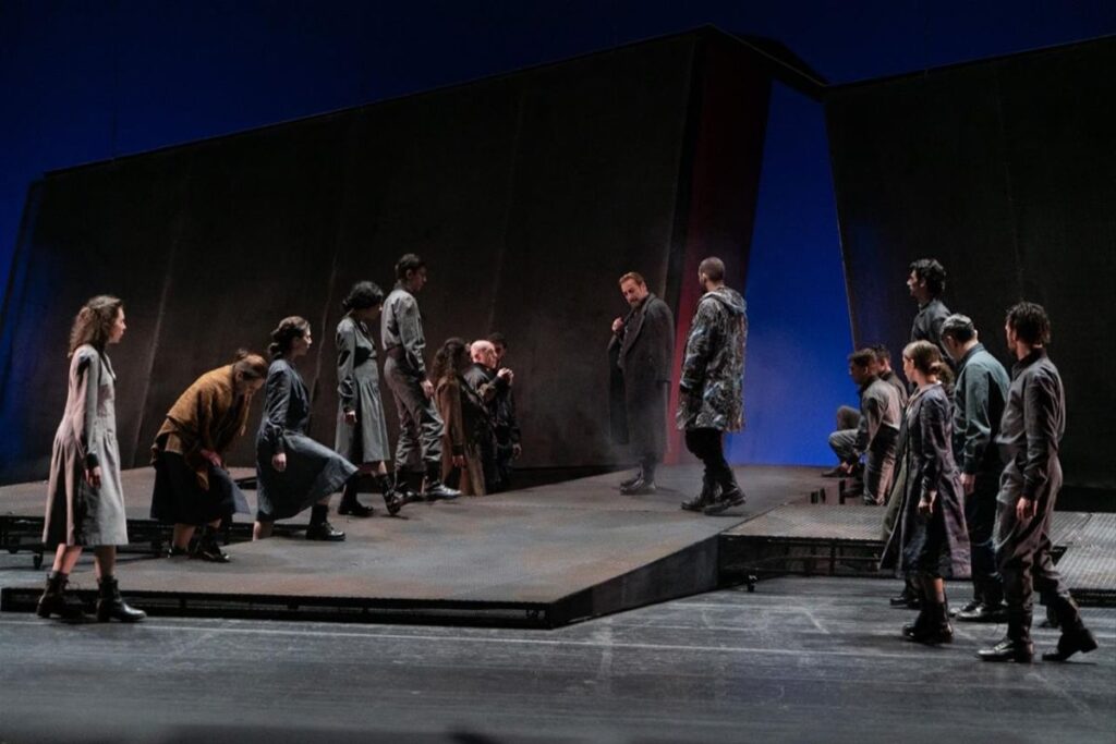 Μαζί με αυτά τα οκτώ πρόσωπα της δράσης, υπάρχει κι ένα σύνολο βουβών προσώπων -πέντε άνδρες και πέντε γυναίκες- που αντιπροσωπεύουν την κοινωνία, η οποία ή «άγεται και φέρεται» ή προωθεί τη δράση. Αυτό μόνο όταν το δείτε ως σύνολο θα είναι, μάλλον, πιο κατανοητό· έχει να κάνει με τη δυναμική δεκαοκτώ σωμάτων επί σκηνής κι όχι οκτώ.