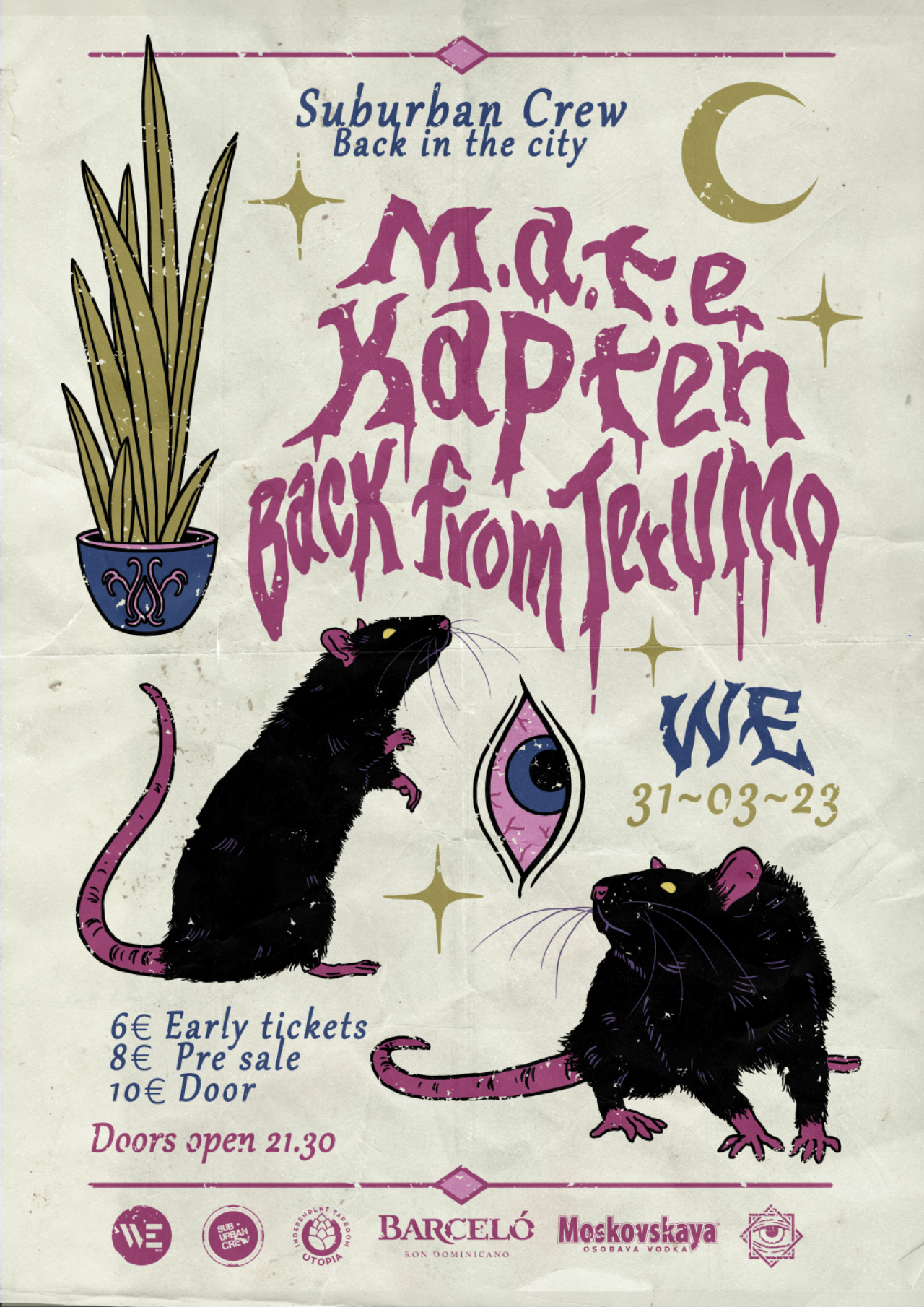 Kapten – M.A.t.E. – Back from Terumo συμπράττουν την Παρασκευή, 31 Μαρτίου, επί σκηνής του Πολυχώρου WΕ, σε ένα ανεπανάληπτο gig για την επιστροφή του Suburban Crew στην πόλη.