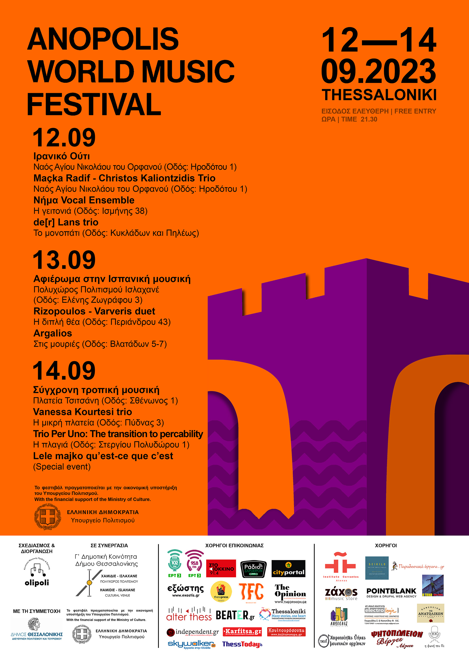 Πλατείες, κρυμμένες γωνιές και μνημεία της Άνω Πόλης, από σήμερα έως την Πέμπτη, 14 Σεπτεμβρίου, αναμένεται να γεμίσουν με μουσικές του κόσμου· δέκα συναυλίες σε εννέα διαφορετικές τοποθεσίες συνθέτουν, για ακόμα μία χρονιά, το Anopolis World Music Festival.