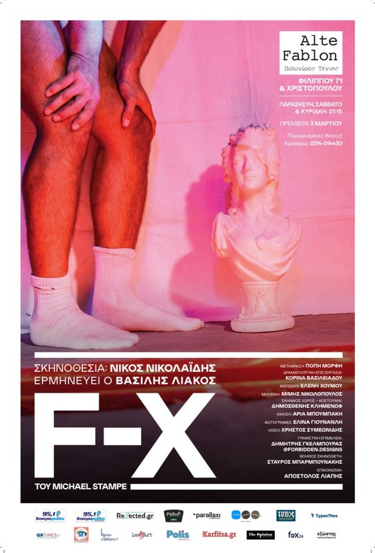 Το θεατρικό έργο του Michael Stampe «F-X», σε σκηνοθεσία Νίκου Νικολαΐδη, ανεβαίνει στον Πολυχώρο Τέχνης Alte Fablon για έξι ακόμη παραστάσεις: 10-12/03 & 17-19/03.